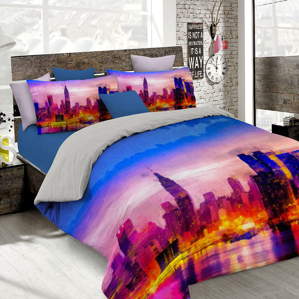Parure de lit imprimée numériquement composée d' une housse de couette et de taies d'oreiller . Idéal pour ceux qui veulent habiller leur lit avec des images originales et uniques. Cette collection est représentée par des produits de haute qualité caractérisés par des impressions numériques sur des tissus 100% coton qui mettent en valeur chaque détail de l'image qui est lumineuse, définie et surtout solide au lavage. Étudié, assemblé et cousu entièrement en Italie , l'imprimé est positionné au centre du sac et des taies d'oreiller.