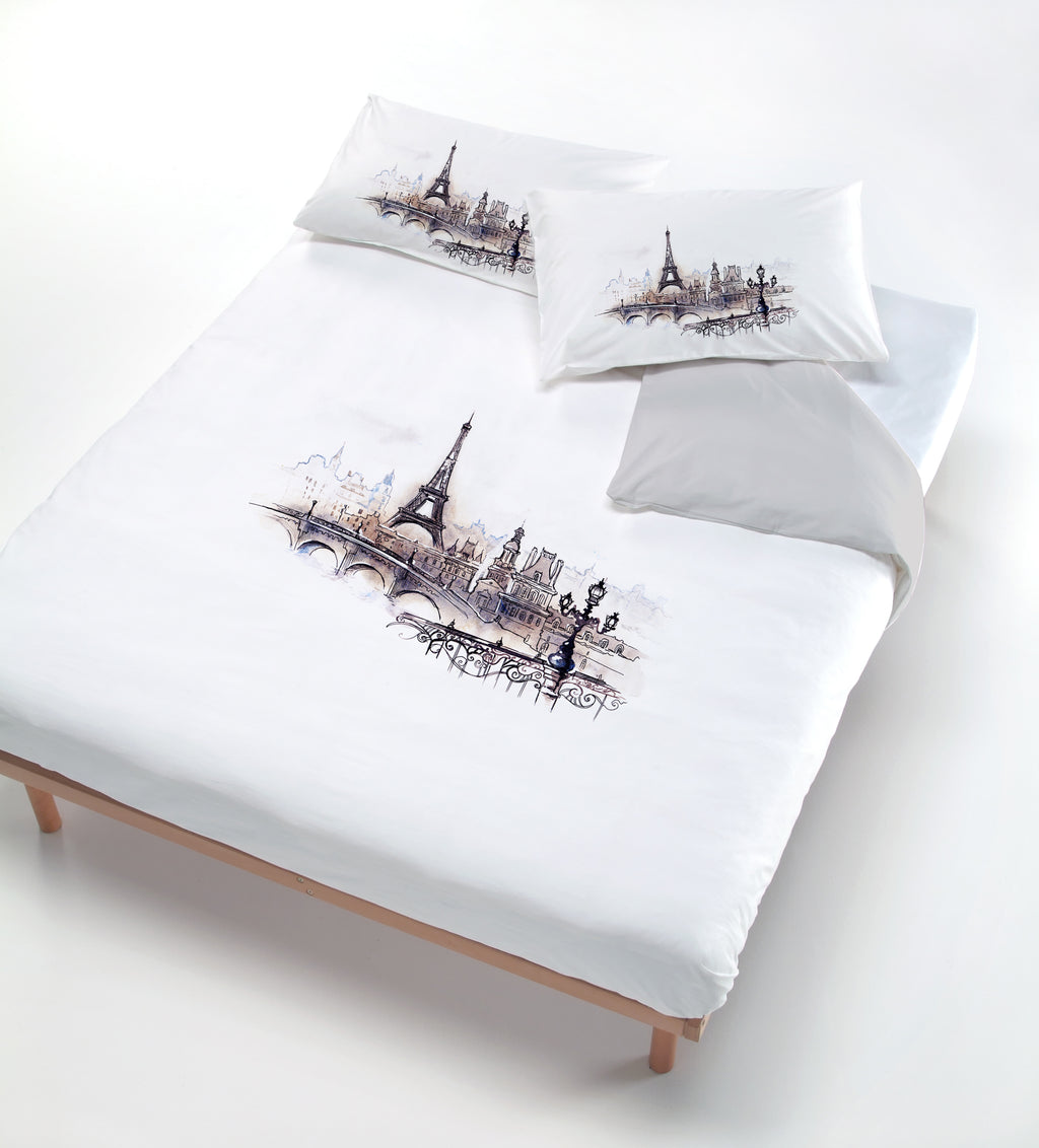 Housse de couette avec imprimé sur le sac et taies d'oreiller gris Paris