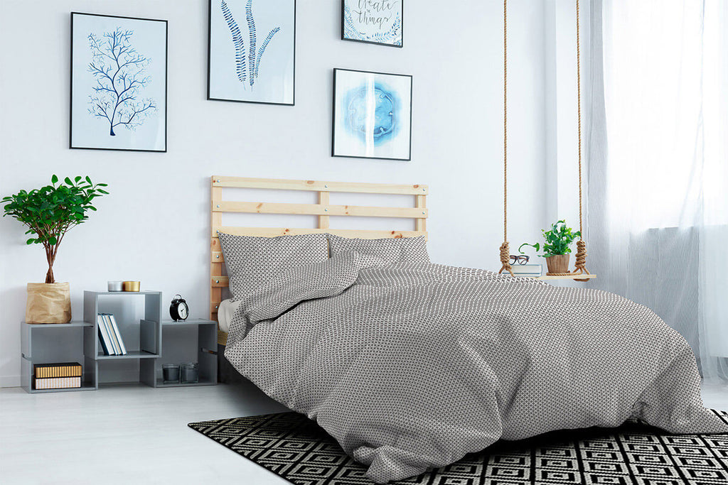 - Double : Housse de couette 250 x 200 + 50 cm (double rabat à fixer sous le matelas) + 2 taies d'oreiller 52x88 cm + rabat intérieur
