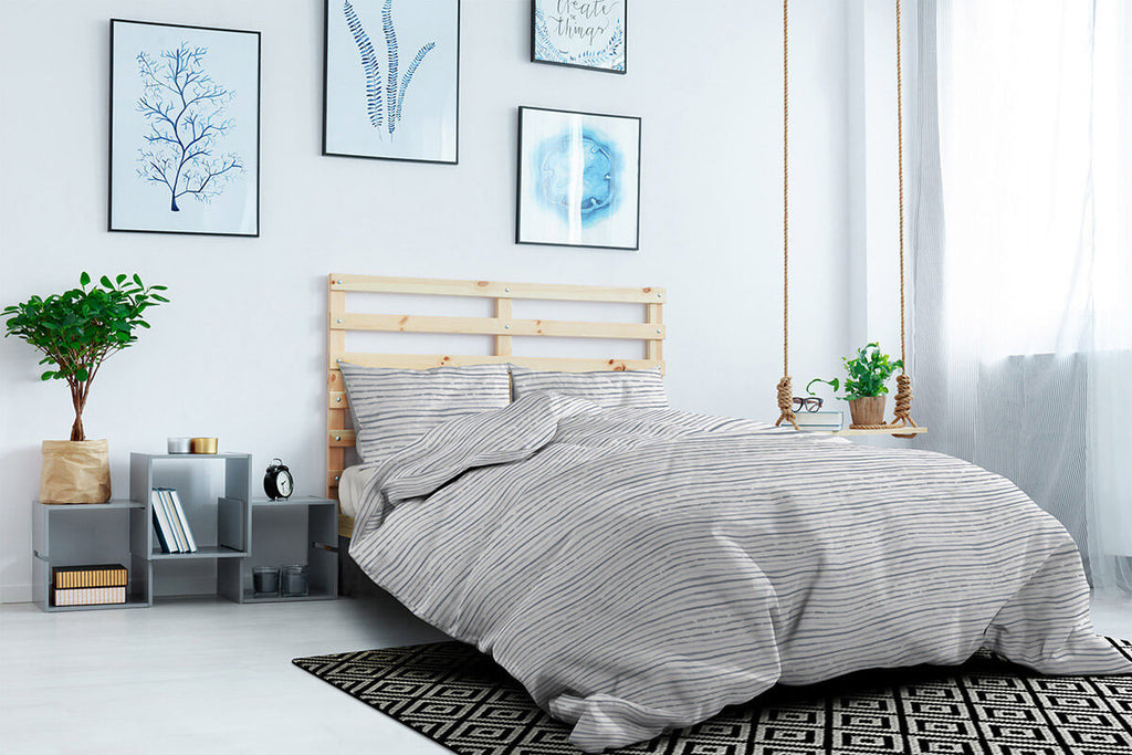 Housse de couette double avec taies d'oreiller imprimées en pur coton gris détroit