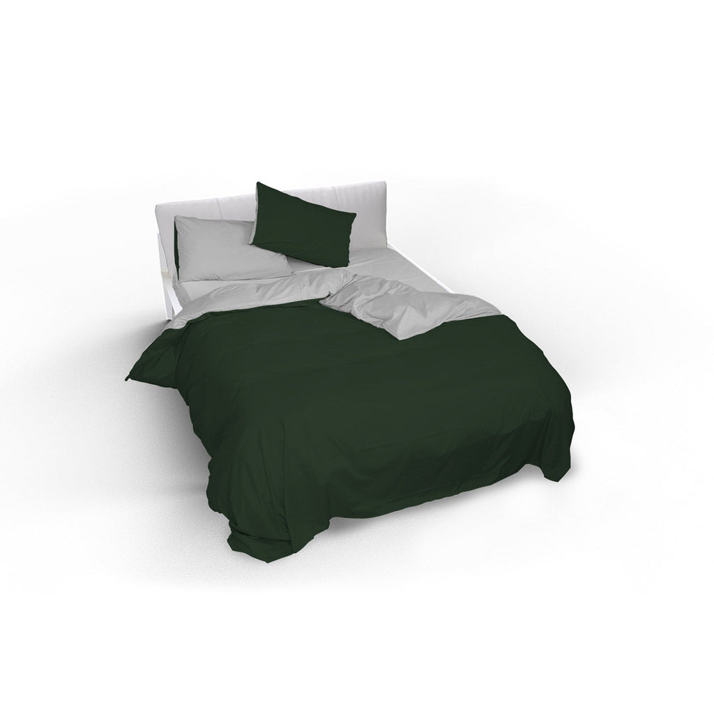 Housse de couette Double avec sac et taies d'oreiller, couleur unie, Double face, vert olive/gris clair