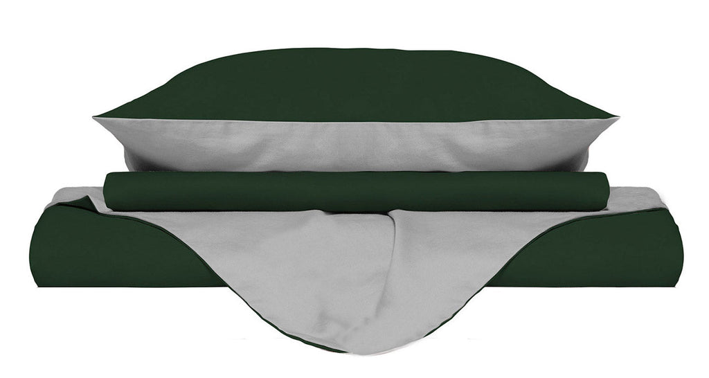 Housse de couette double avec sac et taies d'oreiller double face vert olive/gris clair