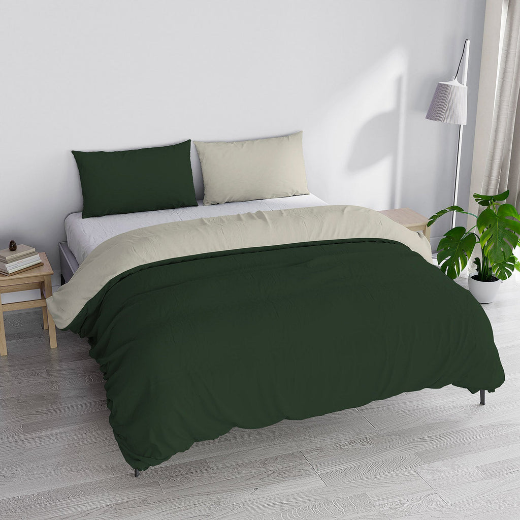 Housse de couette Double avec sac et taies d'oreiller, couleur unie, Double face, vert olive/crème