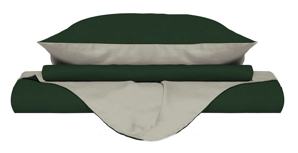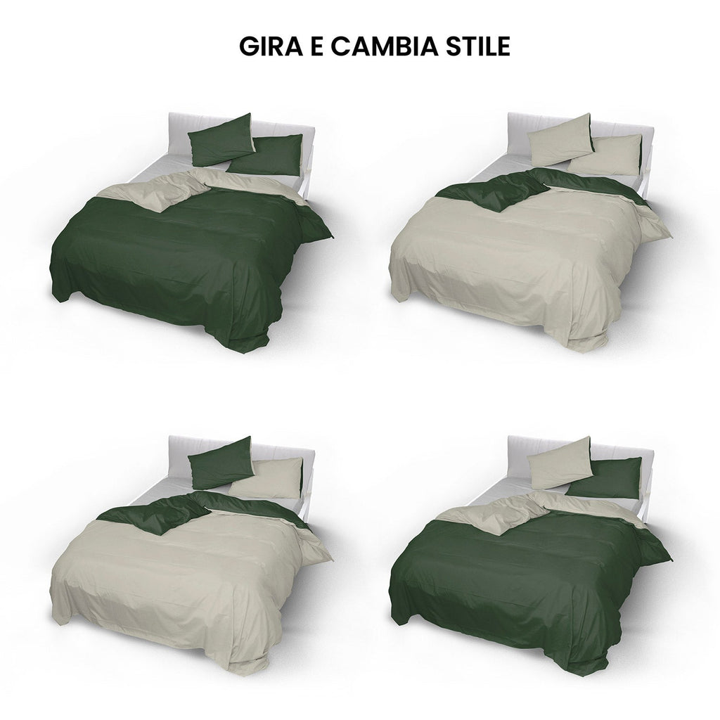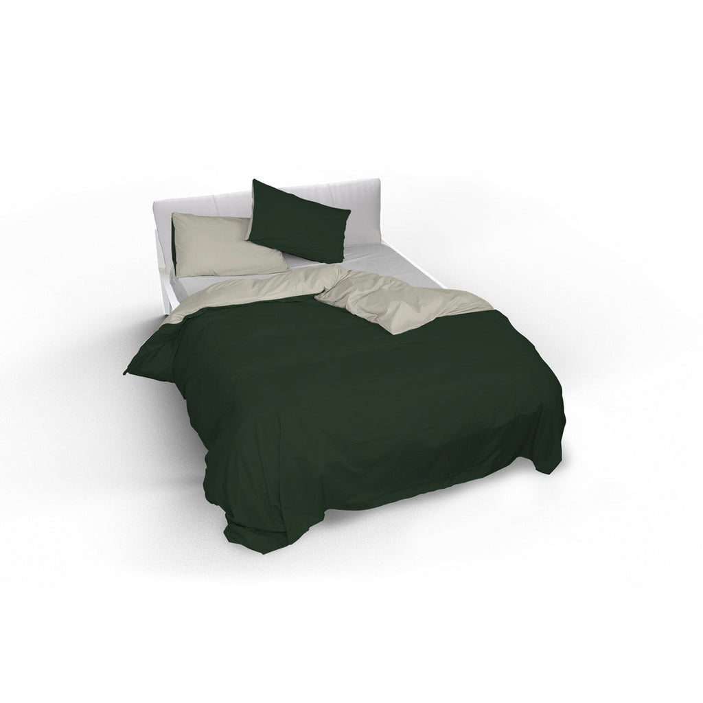 Housse de couette double avec sac et taies d'oreiller double face vert olive/crème