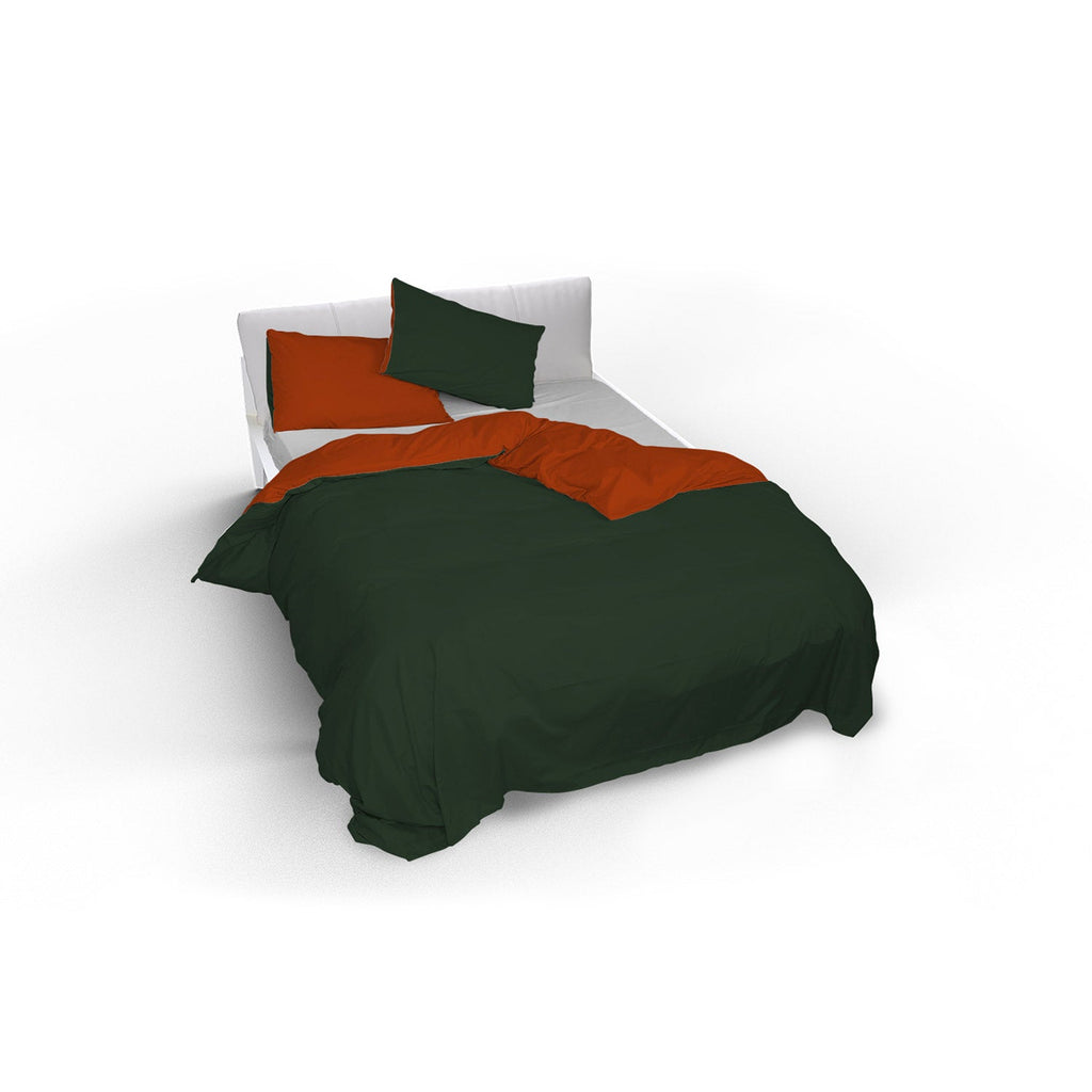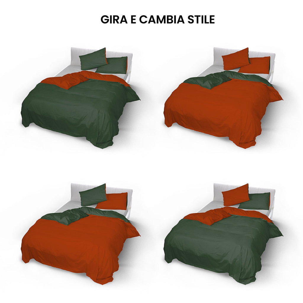 Housse de couette double avec sac et taies d'oreiller double face vert olive/terre