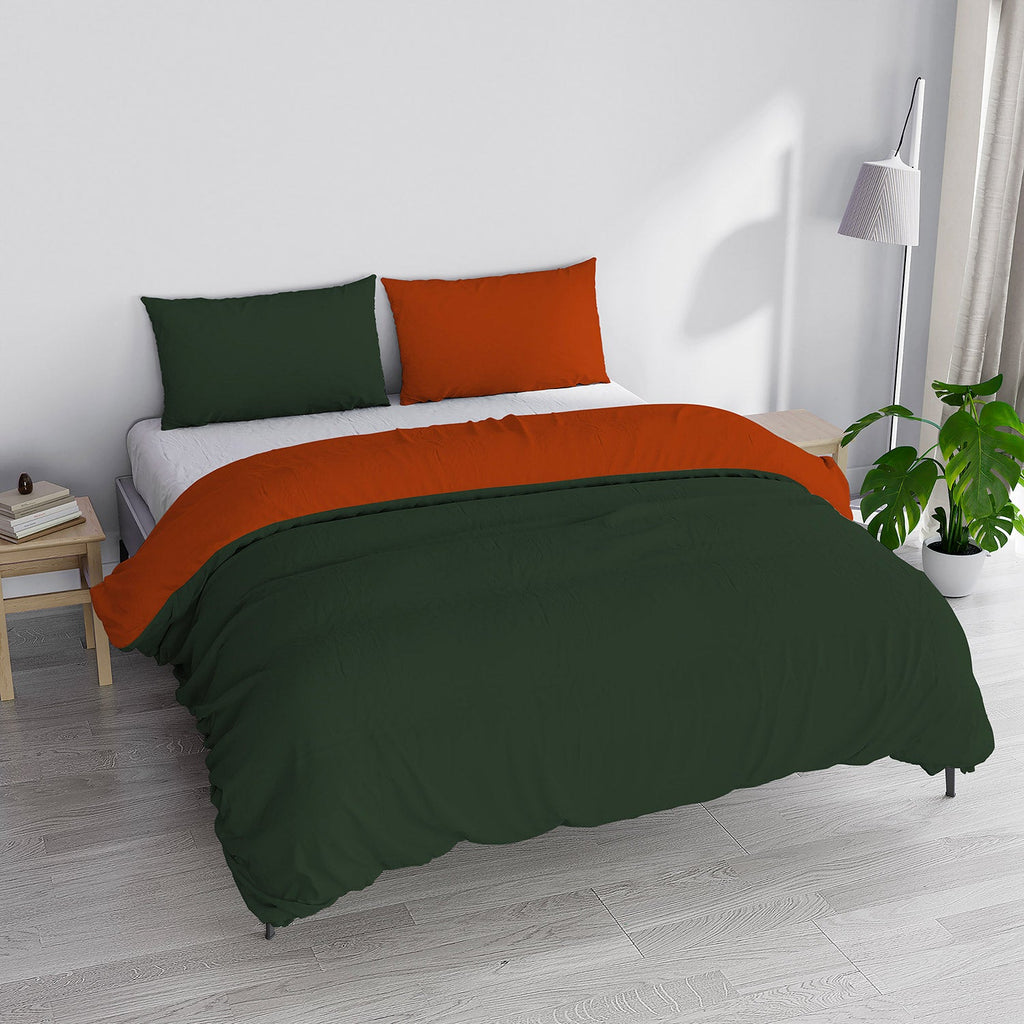 Housse de Couette Double avec Sac et Taies d'oreiller Couleur Unie Double Face Vert Olive/Terre