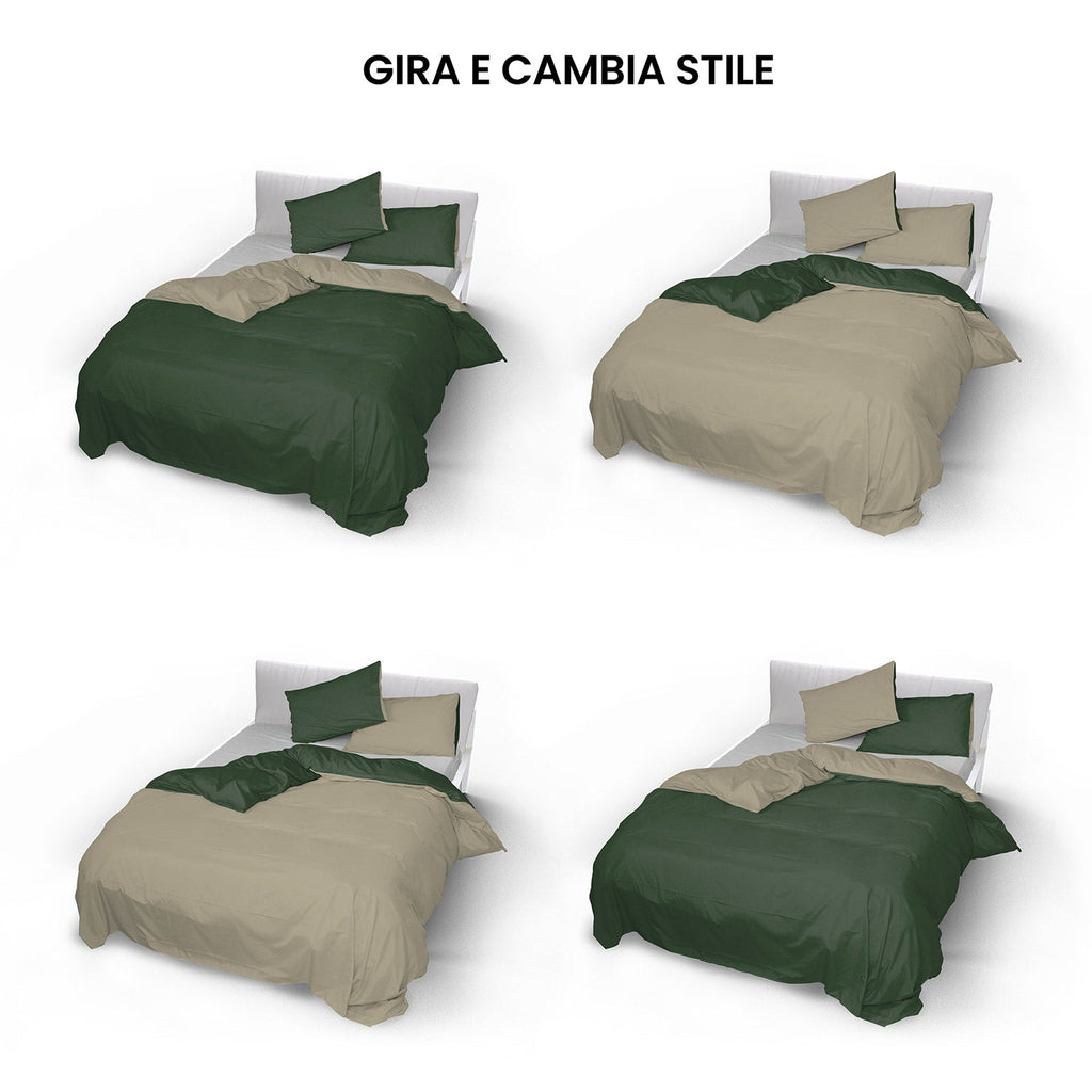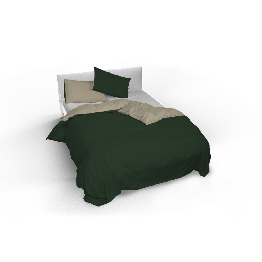 Housse de couette double avec sac et taies d'oreiller double face vert olive/gris tourterelle