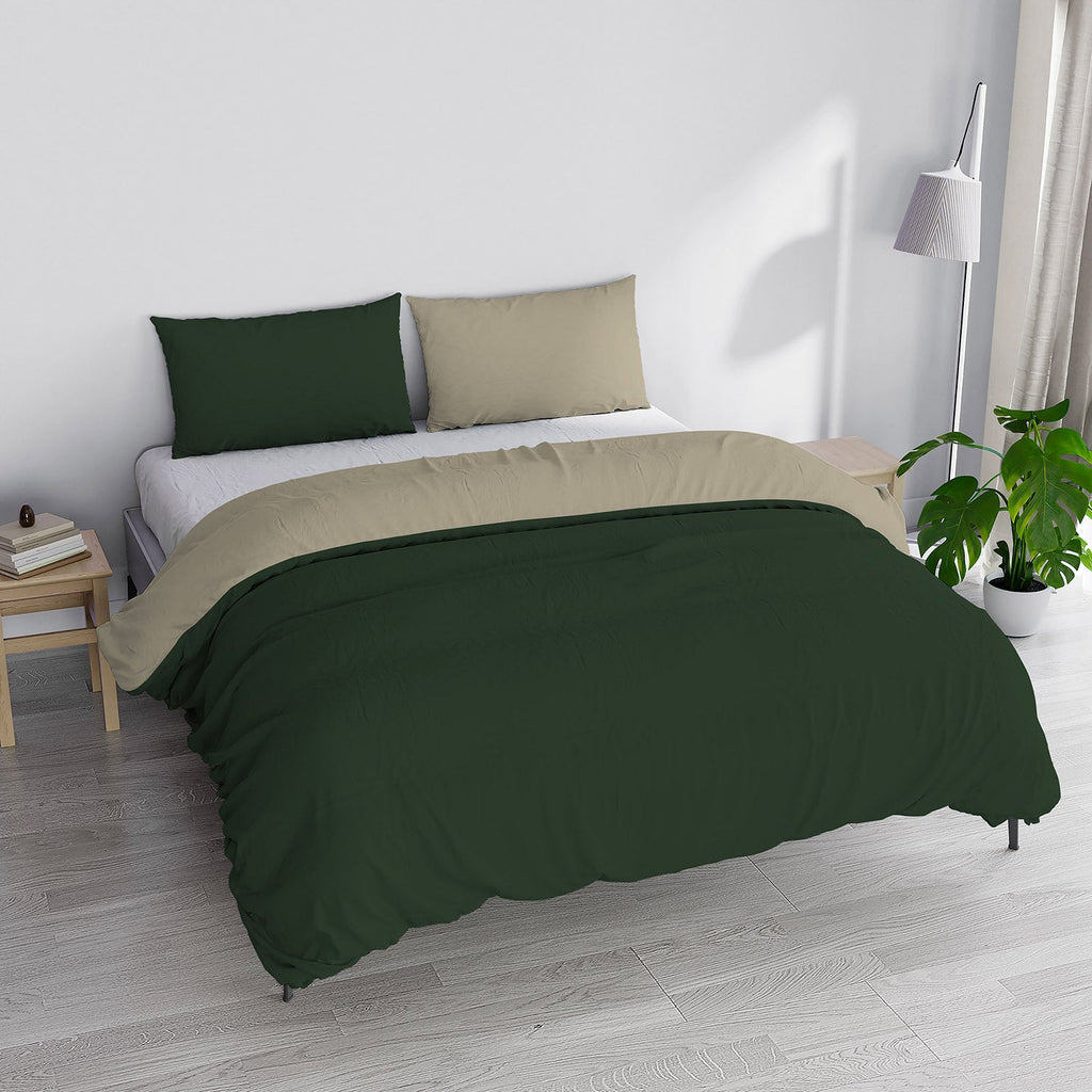 Housse de couette Double avec sac et taies d'oreiller, couleur unie, Double face, vert olive/gris tourterelle