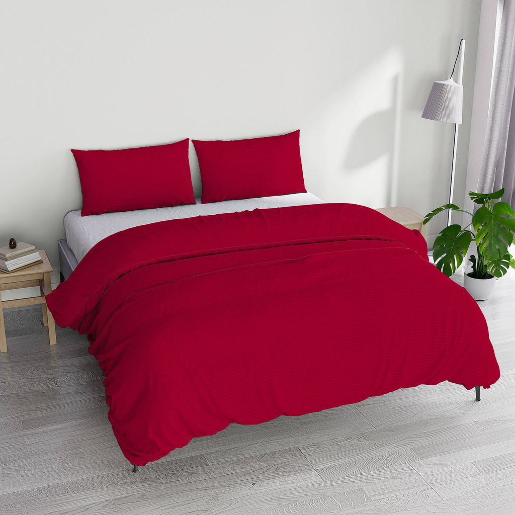 Housse de couette double avec sac et taies d'oreiller en satin de polyester bordeaux