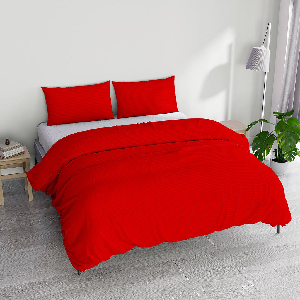 Housse de couette double avec sac et taies d'oreiller en satin polyester rouge