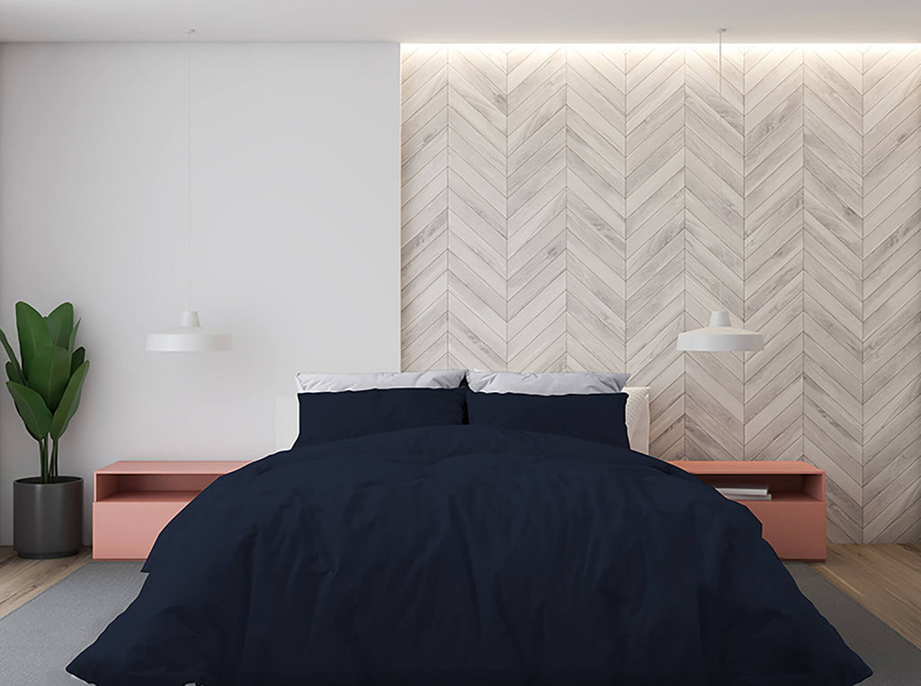 Housse de couette de couleur unie bleu foncé avec sac et taies d'oreiller pour chambre double