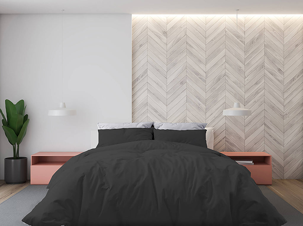 Housse de couette double avec sac et taies d'oreiller couleur unie gris foncé