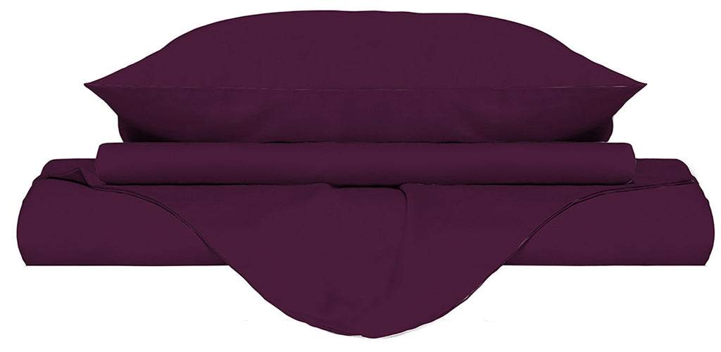 Housse de couette avec sac et taies d'oreiller pour lits doubles de couleur unie prune