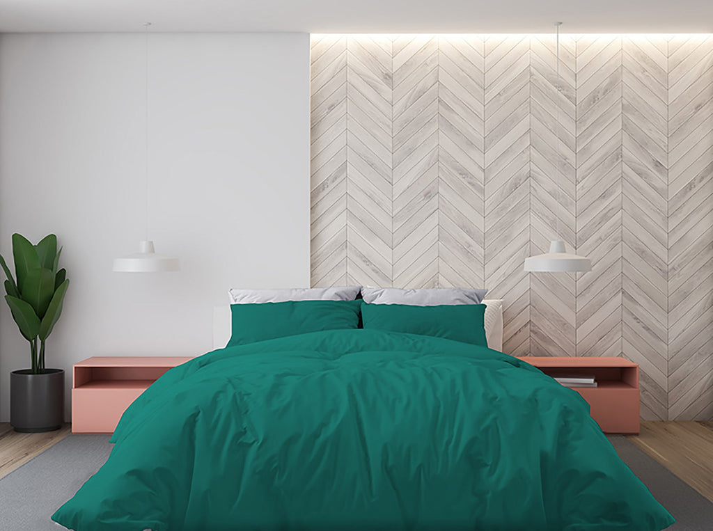 Housse de couette avec sac et taies d'oreiller pour lit double de couleur unie vert d'eau