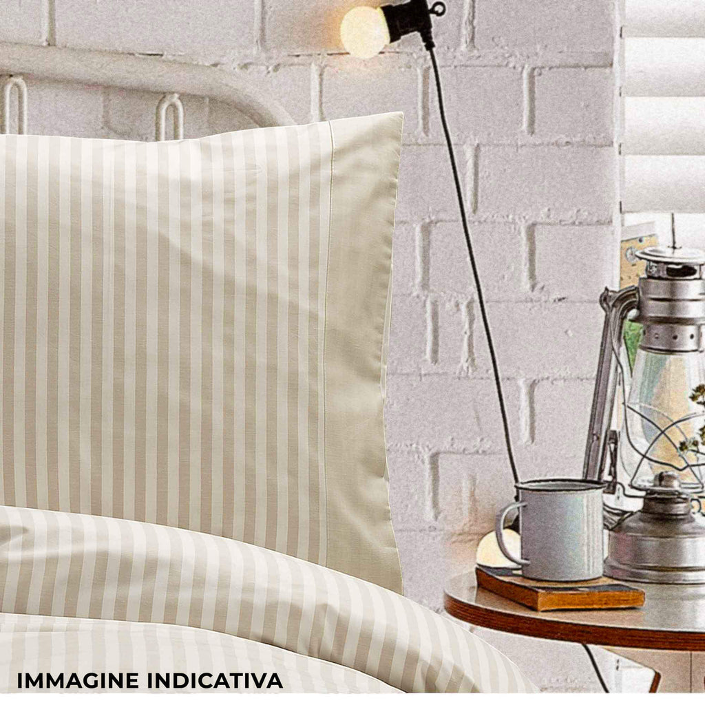 Parure de lit en pur coton teint en fil, rayure moyenne. Comprend : 1 housse de couette et 2 taies d'oreiller. Entièrement fabriqué et emballé en Italie selon la tradition textile artisanale toscane.