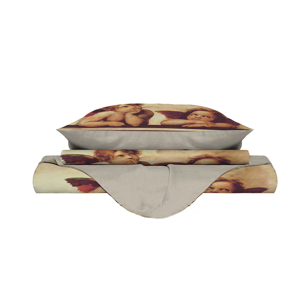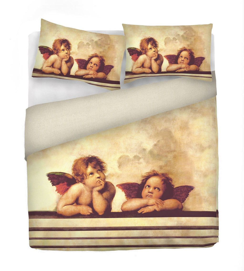 Parure de lit imprimée numériquement composée d'une housse de couette et de taies d'oreiller. Idéal pour ceux qui souhaitent habiller leur lit avec des images originales et uniques. Cette collection est représentée par des produits de très haute qualité caractérisés par des impressions numériques sur des tissus 100% coton qui mettent en valeur chaque détail de l'image qui est lumineuse, définie et surtout résistante au lavage. Conçu, assemblé et cousu entièrement en Italie, l'imprimé est positionné au centre du sac et des taies d'oreiller.