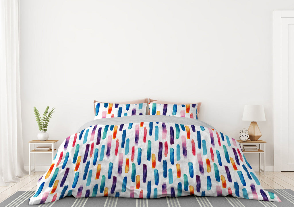 Housse de couette double avec impression sur le sac et les taies d'oreiller