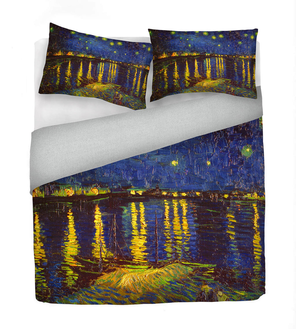 Parure de lit imprimée numériquement composée d'une housse de couette et de taies d'oreiller. Idéal pour ceux qui souhaitent habiller leur lit avec des images originales et uniques. Cette collection est représentée par des produits de très haute qualité caractérisés par des impressions numériques sur des tissus 100% coton qui mettent en valeur chaque détail de l'image qui est lumineuse, définie et surtout résistante au lavage. Conçu, assemblé et cousu entièrement en Italie, l'imprimé est positionné au centre du sac et des taies d'oreiller.