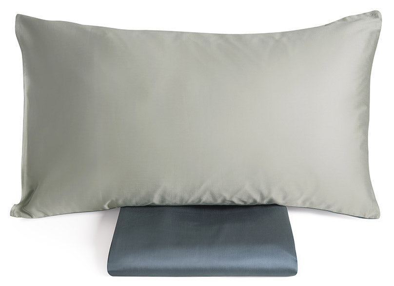 Housse de couette en pur satin de coton . Enveloppez votre repos dans une housse de couette pur coton très douce en renouvelant votre mobilier de lit avec les coloris Ruppia et Rayong en version double face .
