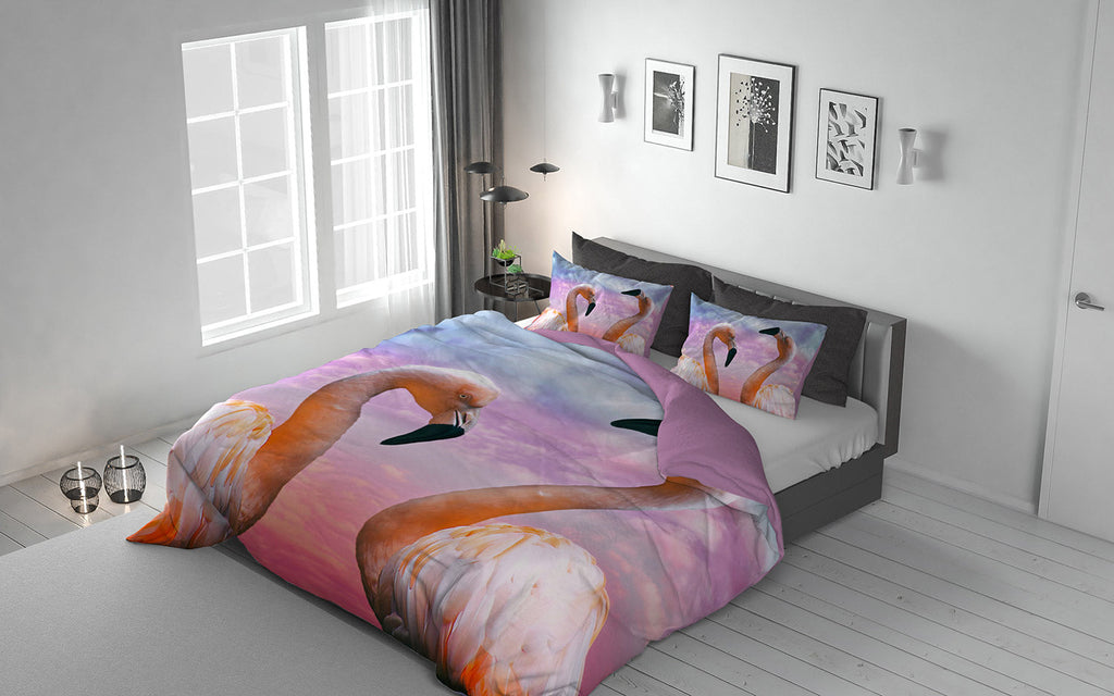 Housse de couette imprimée en microfibre Flamingo avec taies d'oreiller