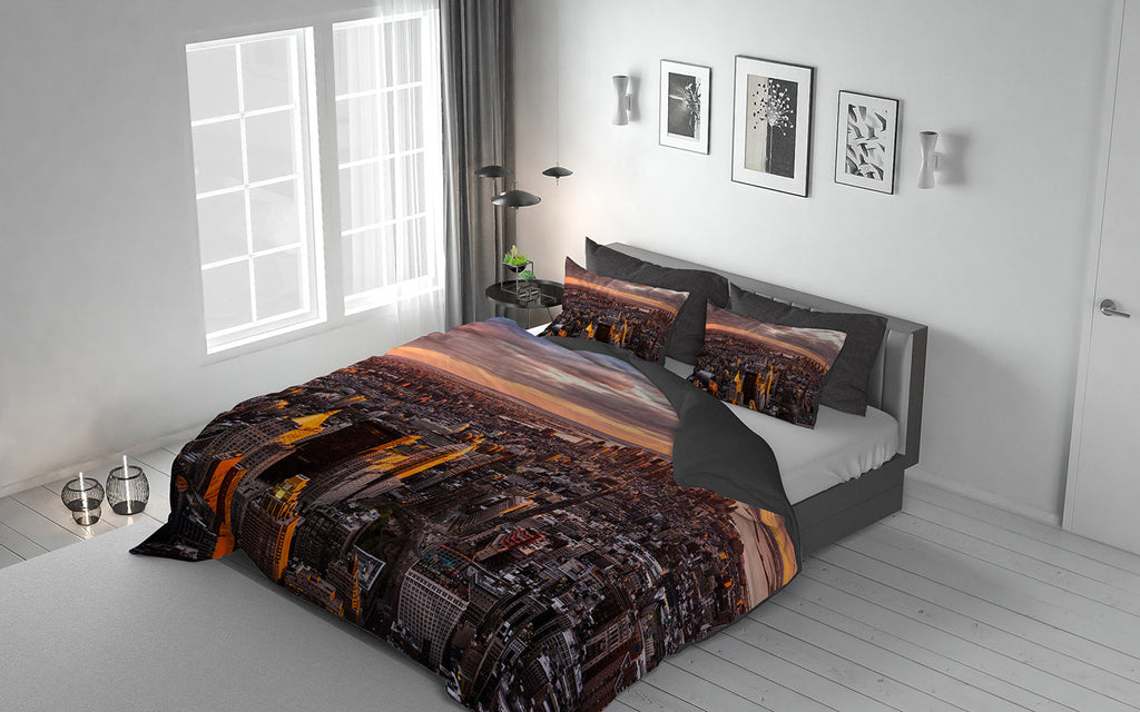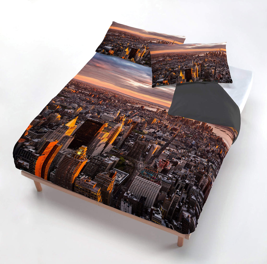 Housse de couette avec taies d'oreiller imprimées en microfibre Manhattan différentes tailles