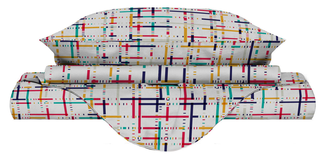 - 1 Queen size : Housse de couette 200 x 200 cm + double rabat à fixer sous le matelas + taie d'oreiller 52 x 82 cm + rabat intérieur