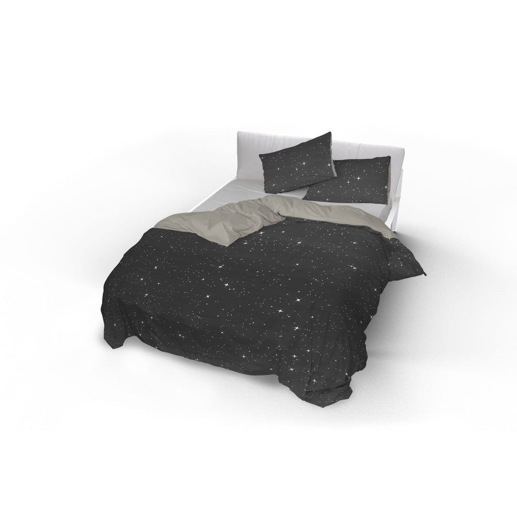 Housse de couette avec taies d'oreiller imprimées en microfibre Etoiles Gris Différentes tailles