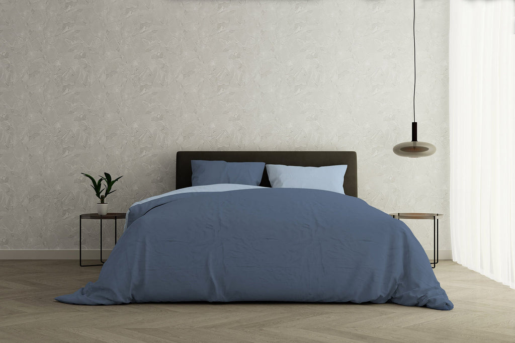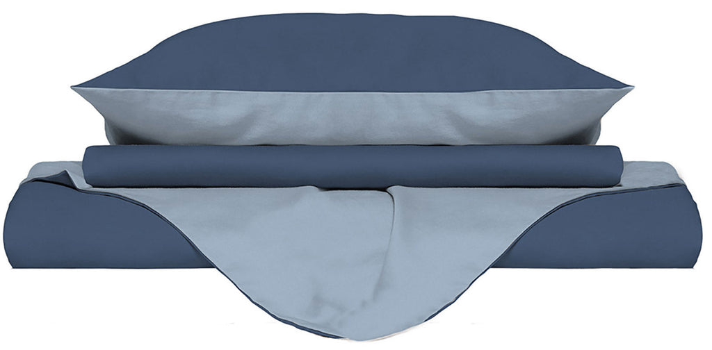 Housse de couette avec sac et taies d'oreiller double face avio/bleu clair