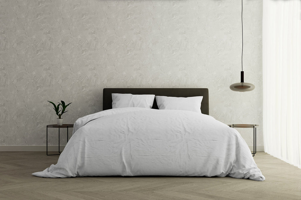 Housse de couette avec sac et taies d'oreiller Réversible Blanc/Blanc