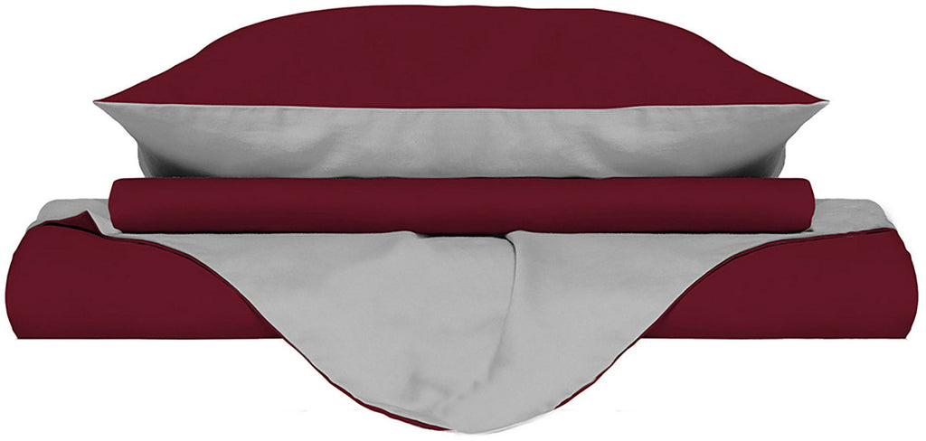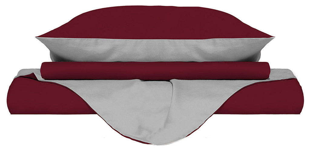 Housse de couette avec sac et taies d'oreiller Doubleface Bordeaux/Gris clair Différentes tailles