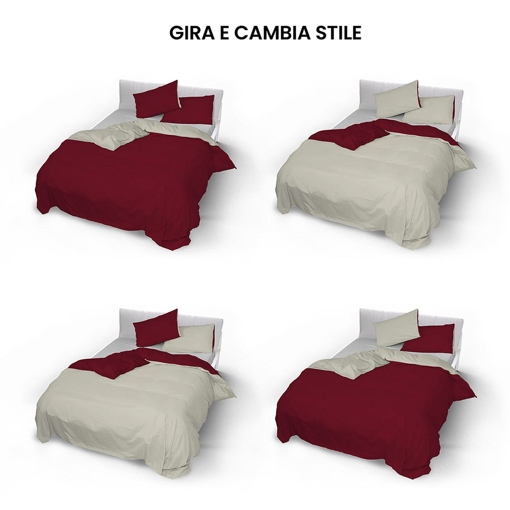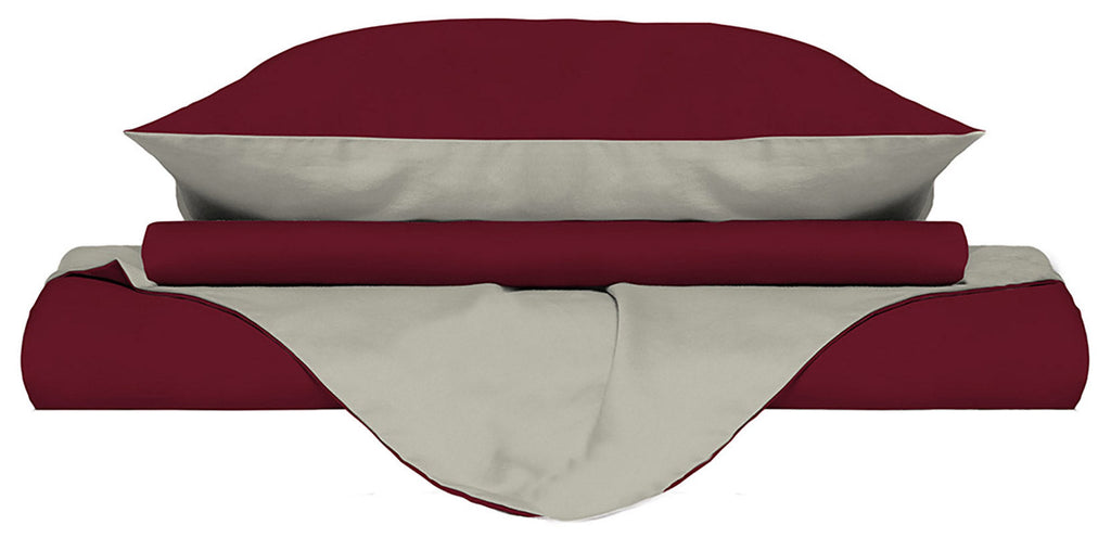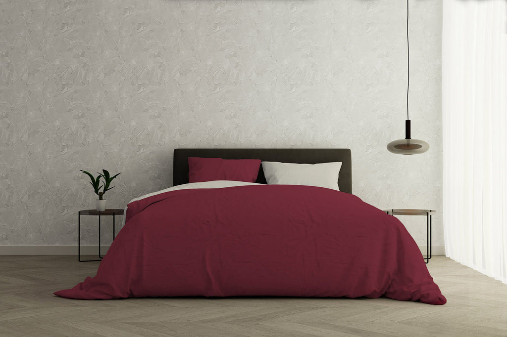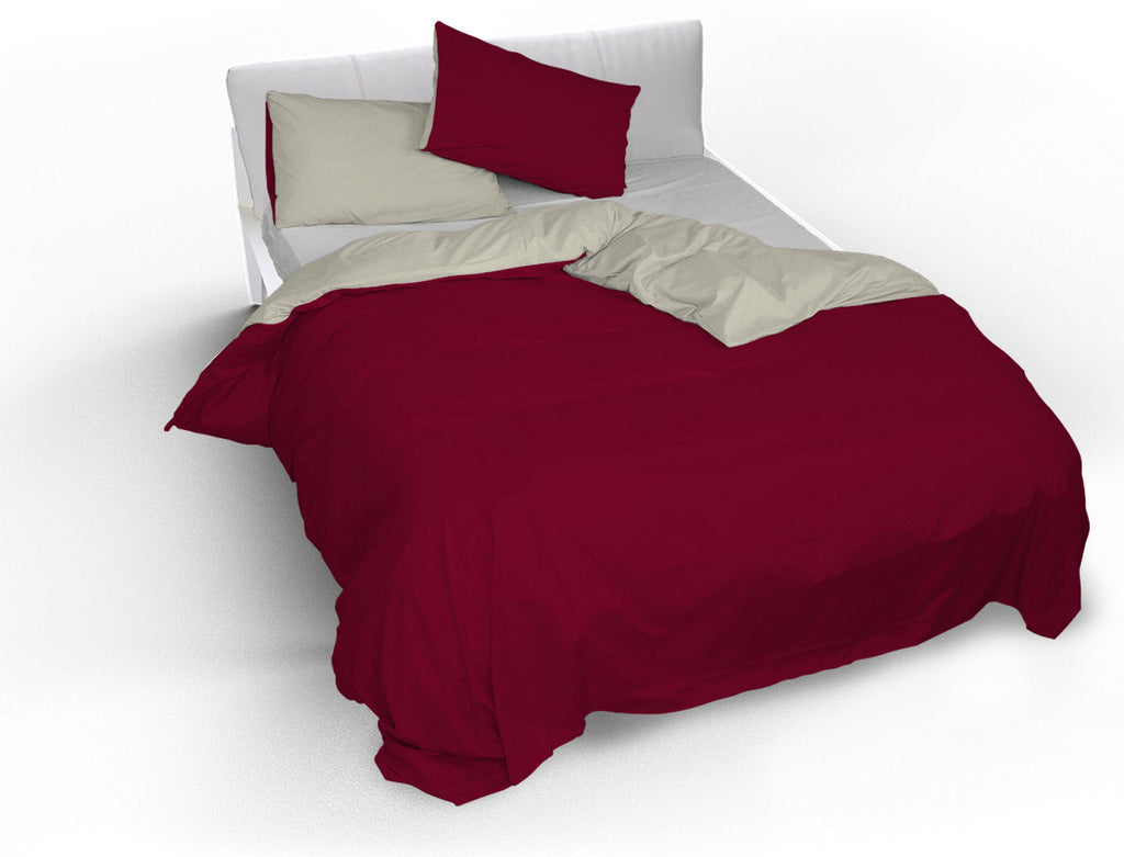 Housse de couette double face bordeaux/crème avec sac et taies d'oreiller
