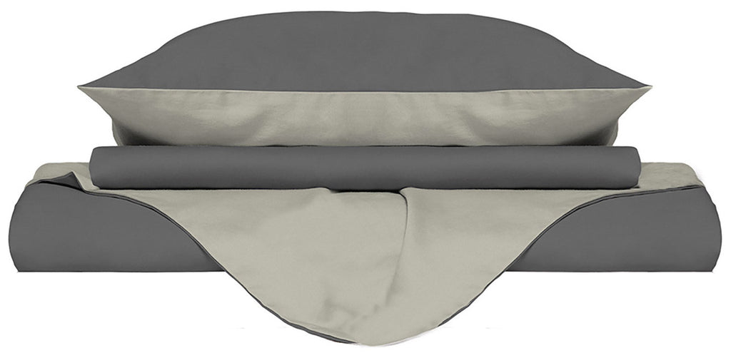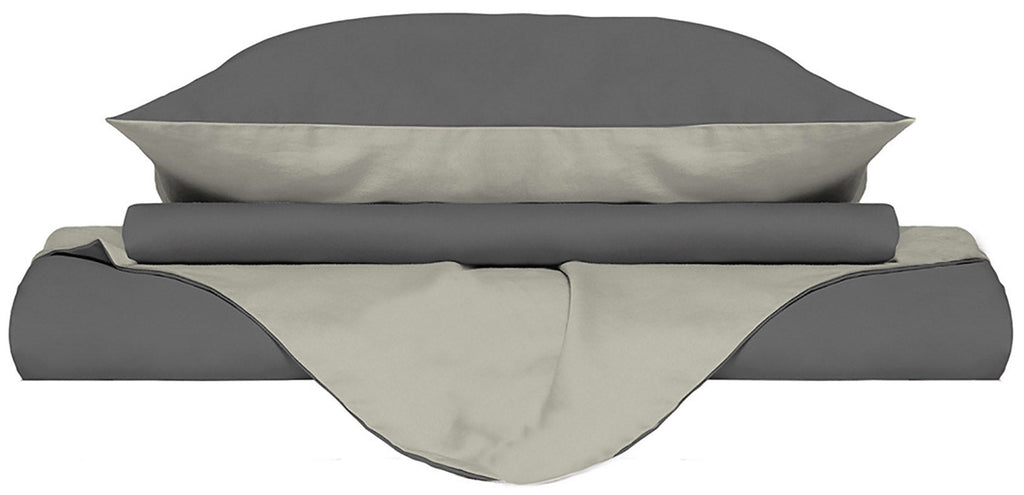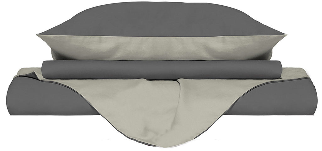 Housse de couette avec sac et taies d'oreiller double face Fumée / Crème