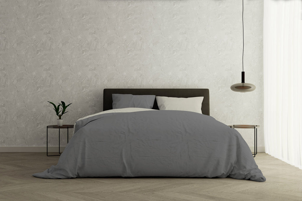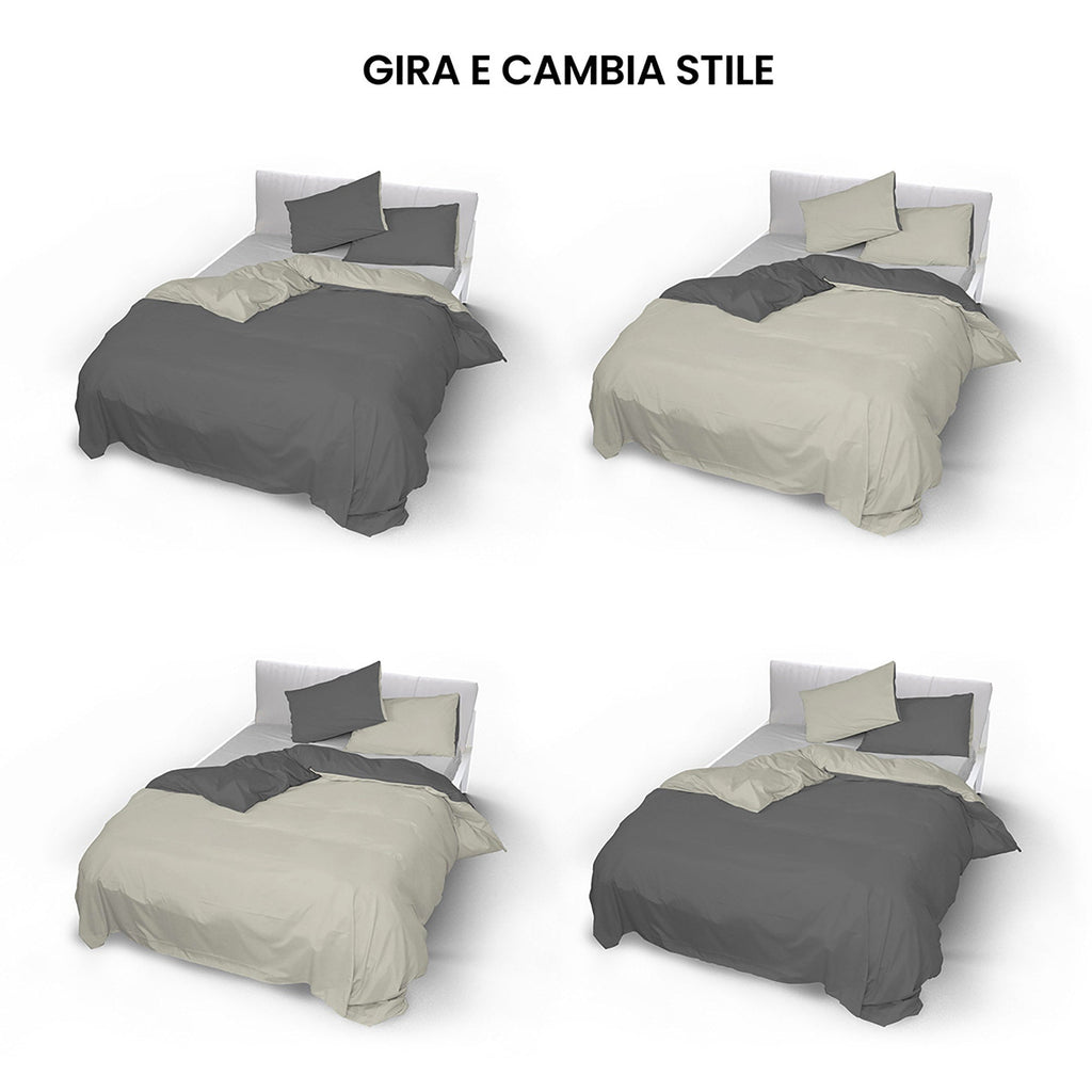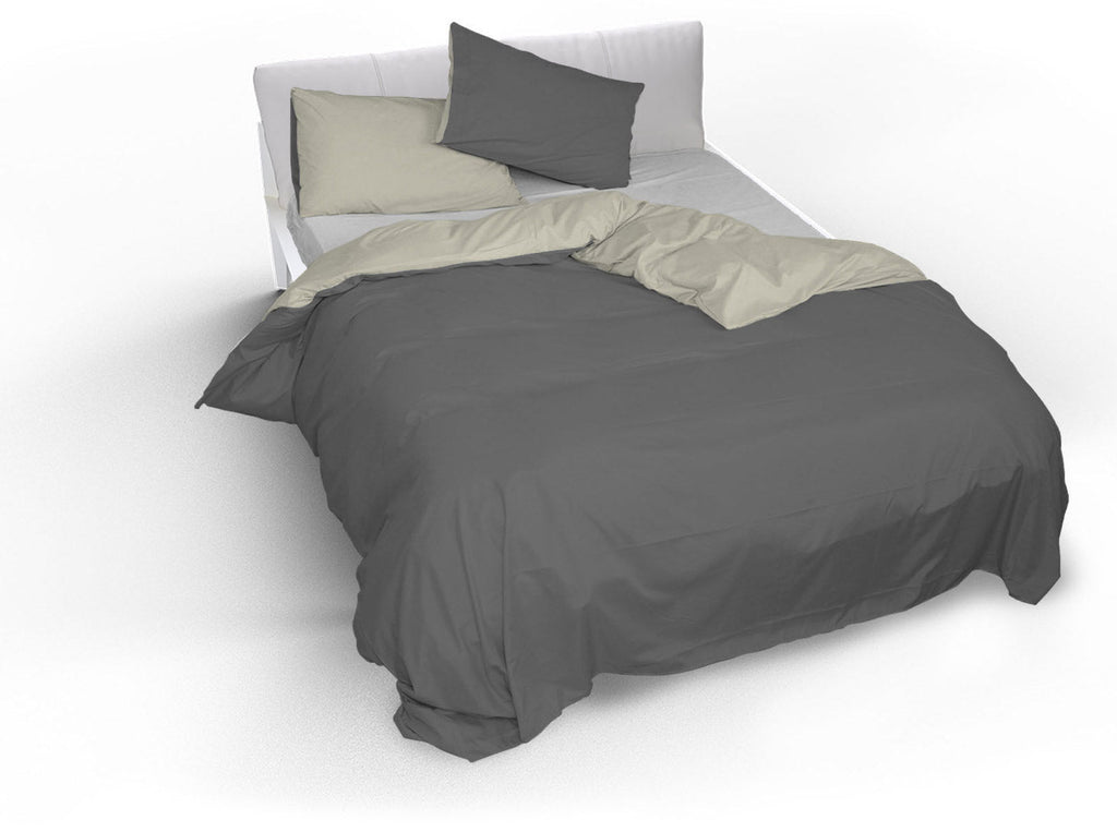 Housse de couette avec sac et taies d'oreiller Doubleface Fumée/Crème Différentes tailles