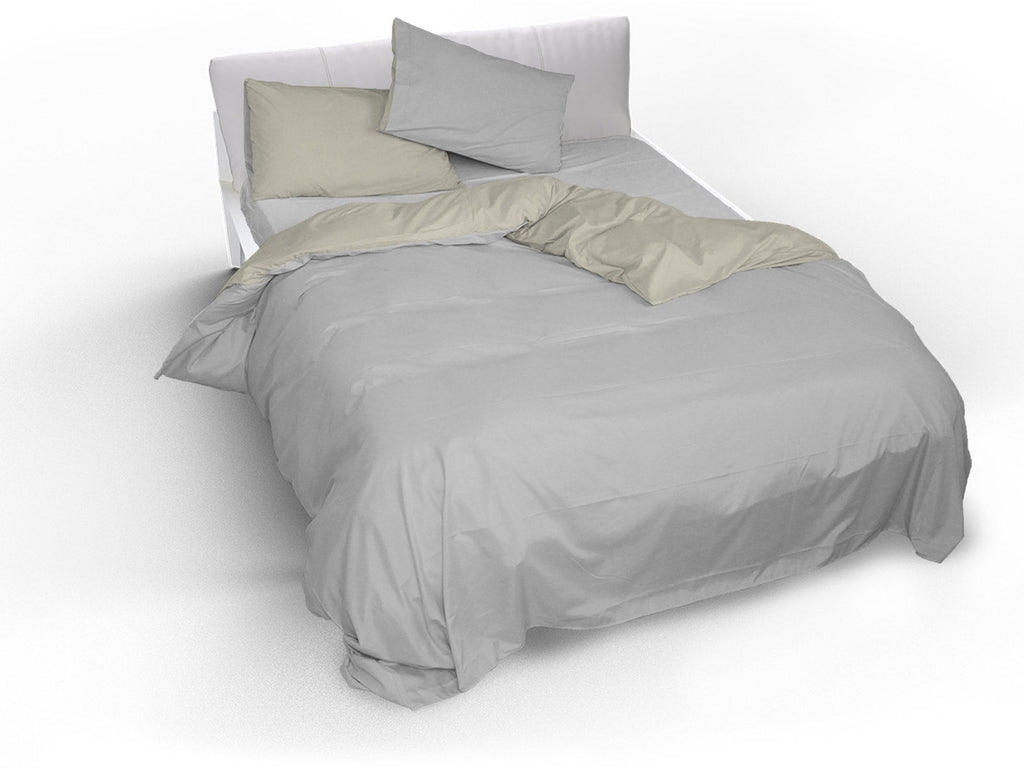 Housse de couette avec sac et taies d'oreiller réversible gris clair/crème