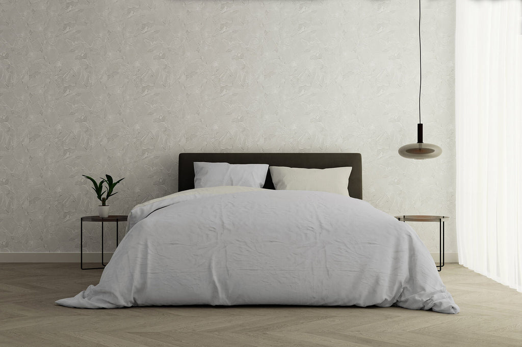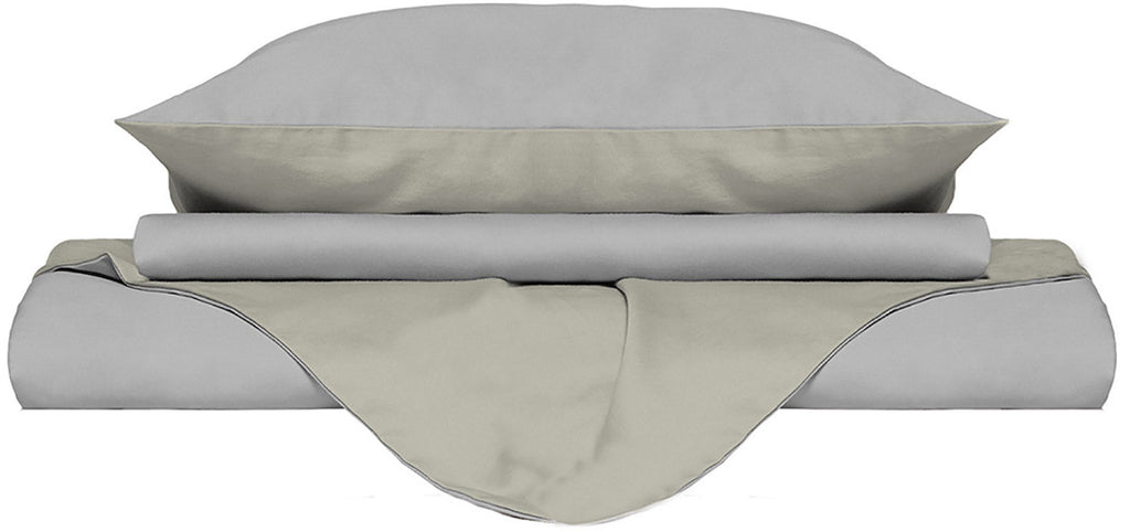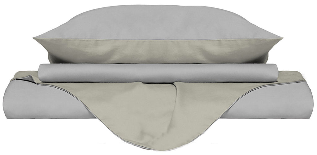 Housse de Couette avec Sac et Taies d'Oreiller Réversible Gris Clair / Crème Différentes Tailles