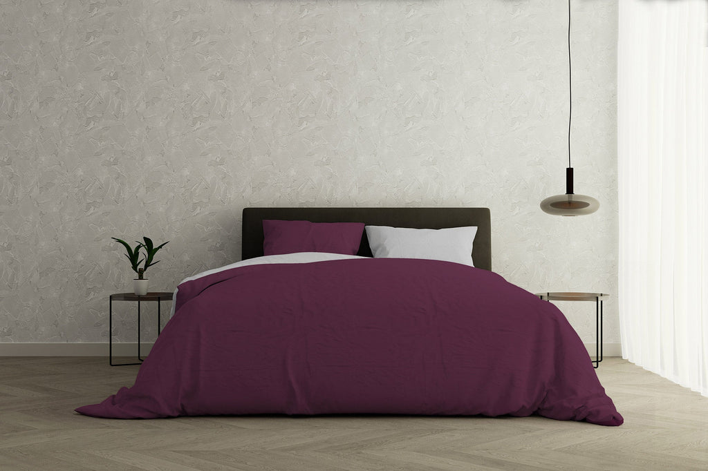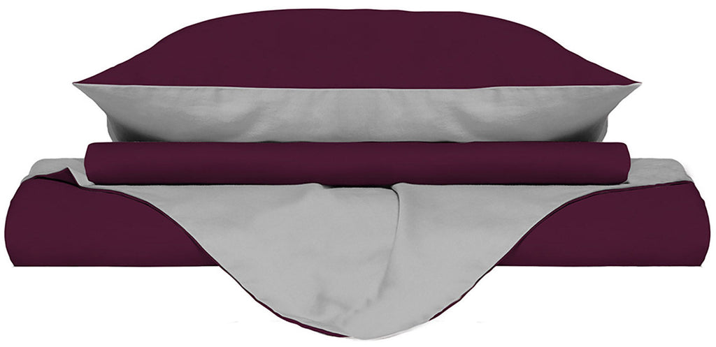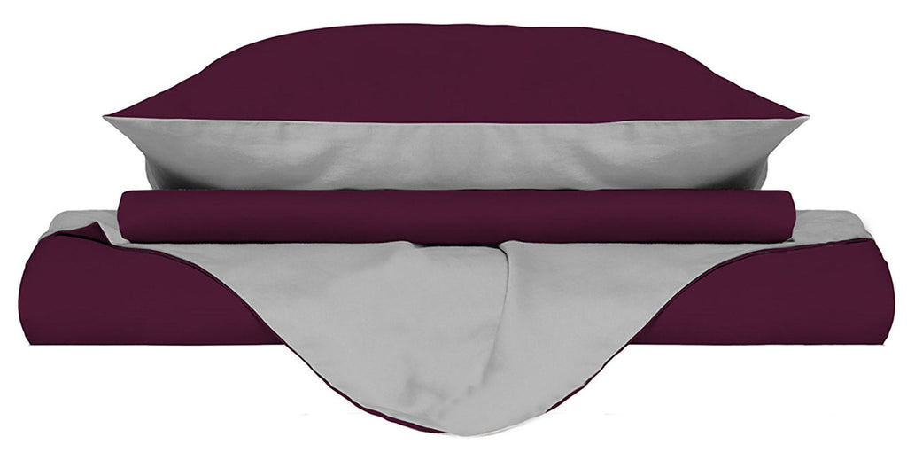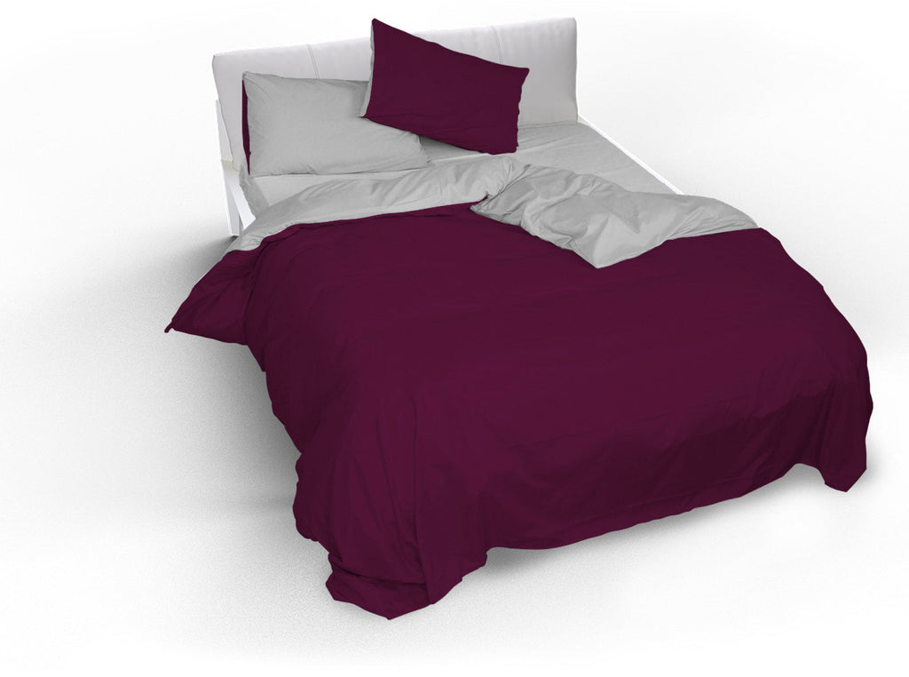 Housse de couette avec sac et taies Doubleface Prune/Gris Clair