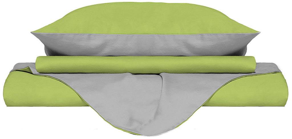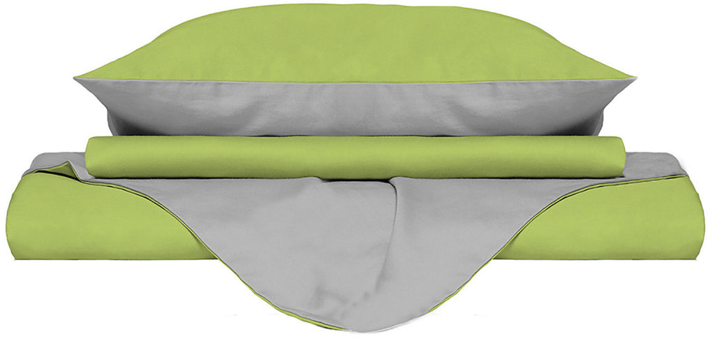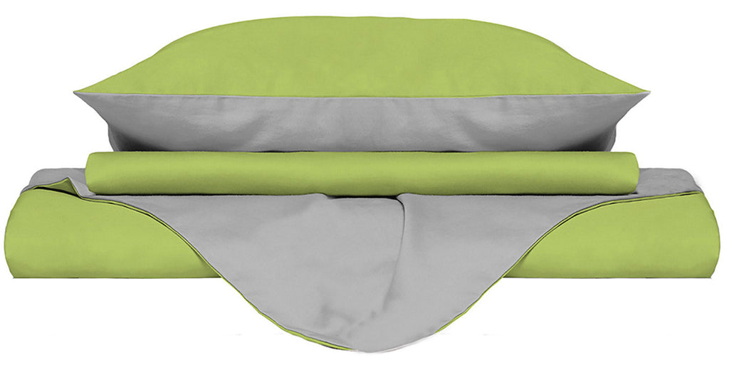 Housse de couette avec sac et taies d'oreiller Doubleface Vert Acide/Gris Clair