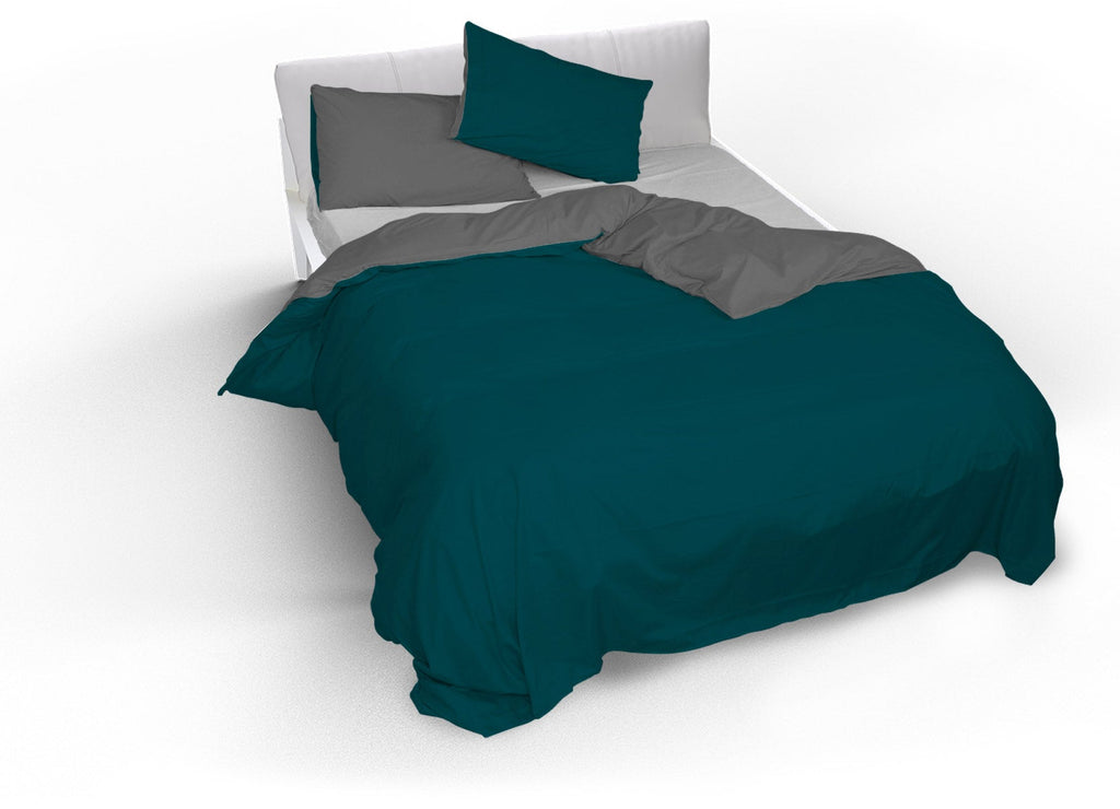 Housse de couette avec sac et taies d'oreiller réversible vert pétrole/fumée différentes tailles