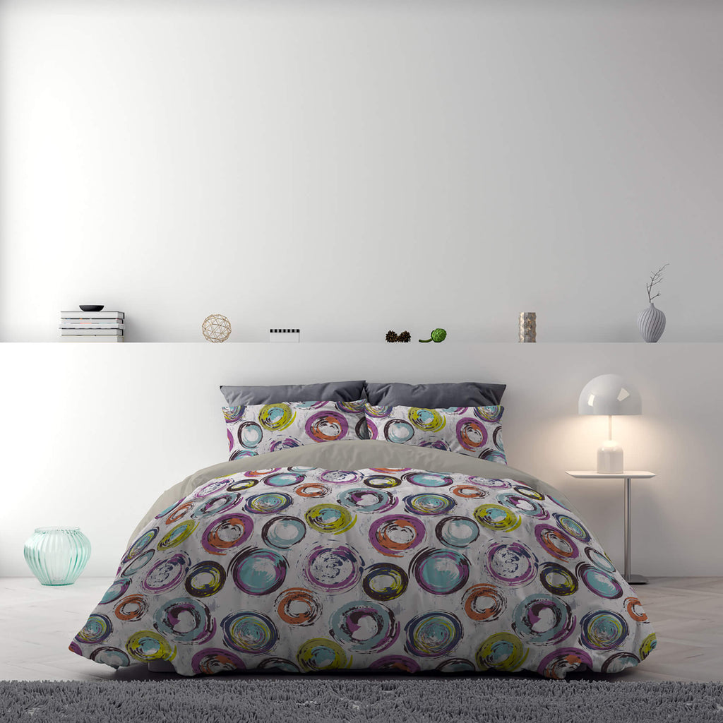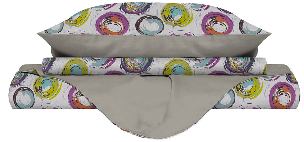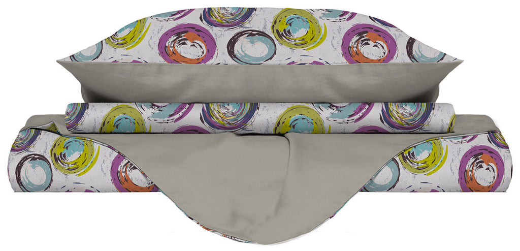 Housse de couette avec imprimé sur le sac et taies d'oreiller Doubleface Abstract Circles