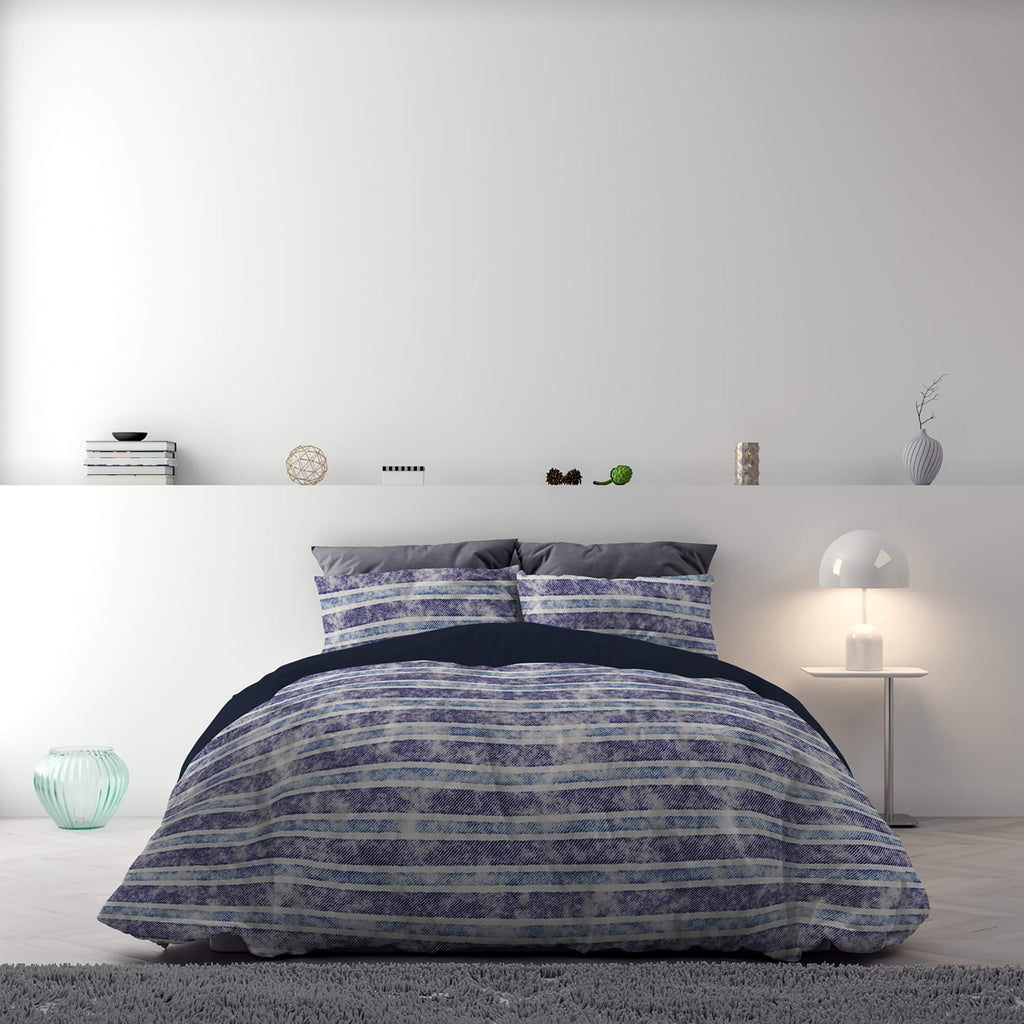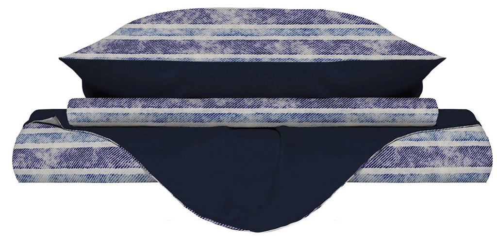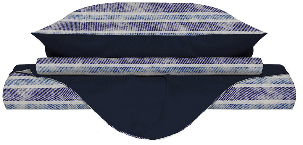 Housse de couette simple avec imprimé sur le sac et taies d'oreiller double face Jeans Stripes