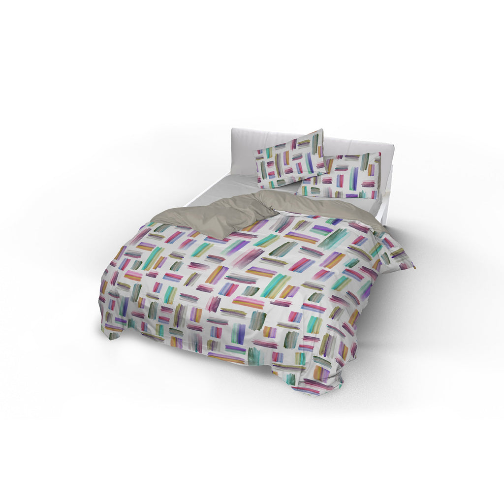 Housse de couette avec impression sur le sac et taies d'oreiller double face multicolores