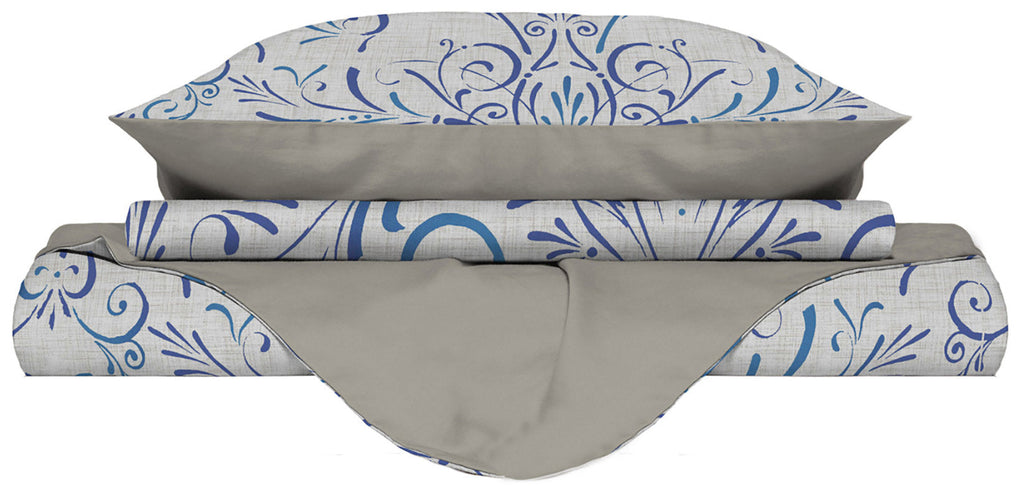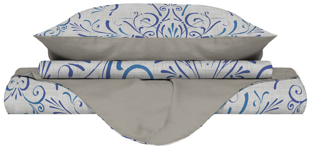 Housse de couette avec impression sur le sac et taies d'oreiller double face Ornato Tex