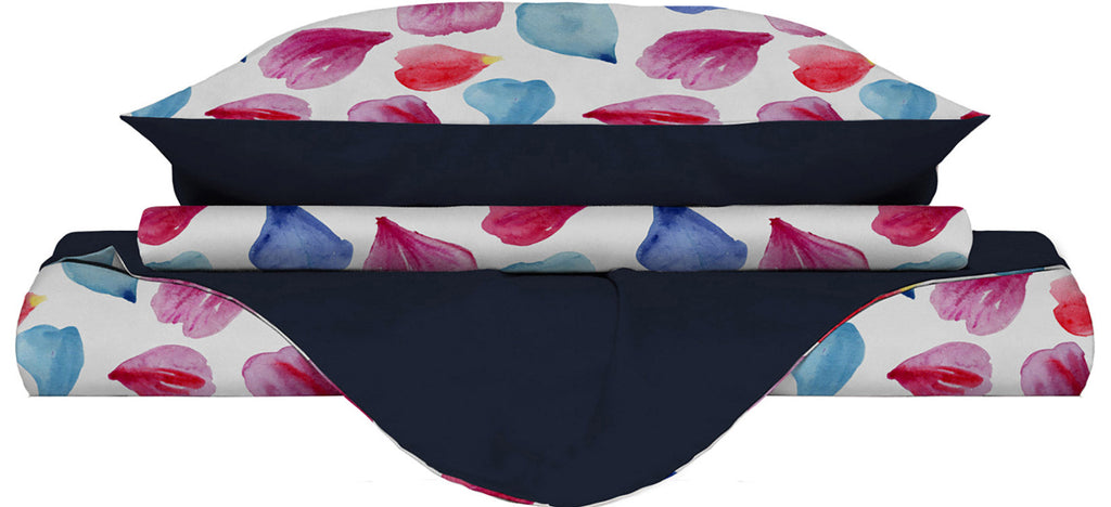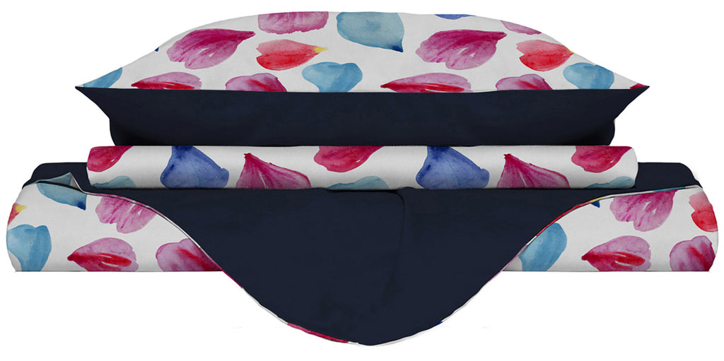 Housse de couette avec imprimé sur le sac et taies d'oreiller réversibles pétales
