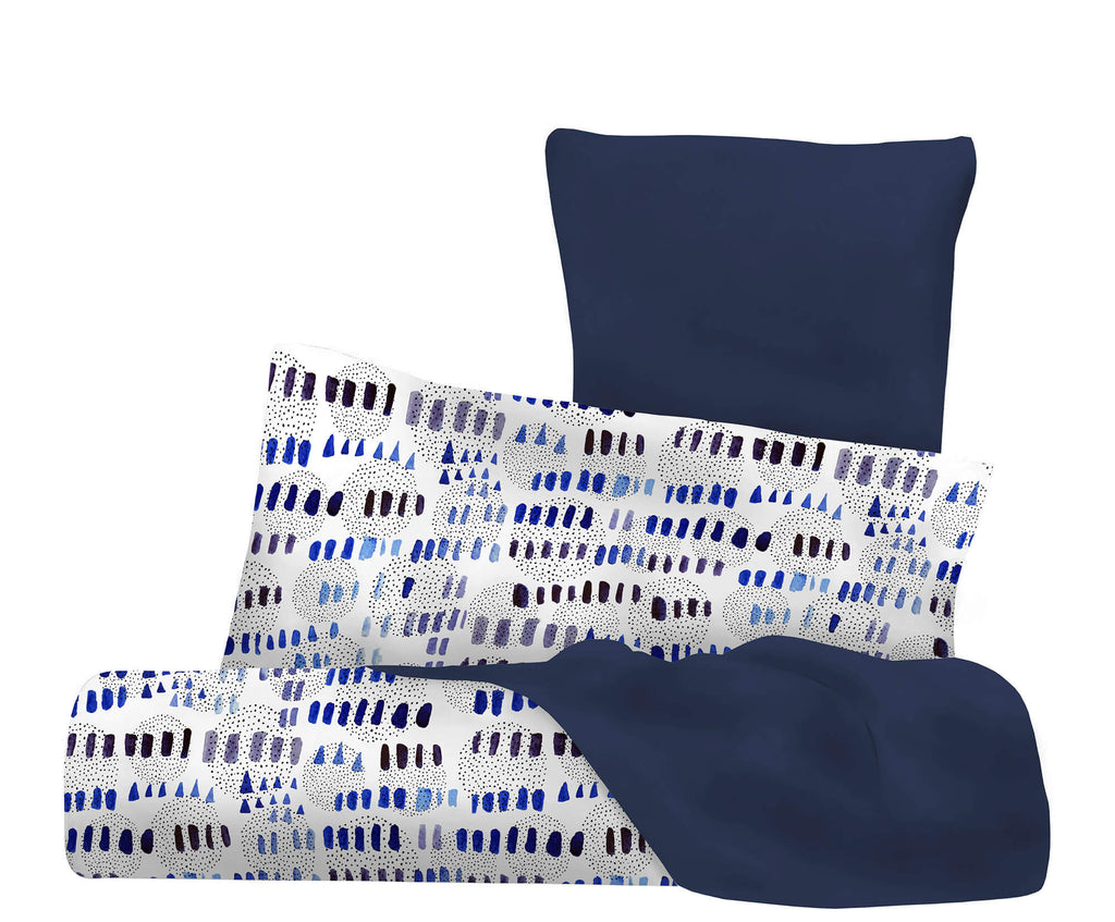 Housse de couette avec impression sur le sac et taies d'oreiller double face à pois et lignes