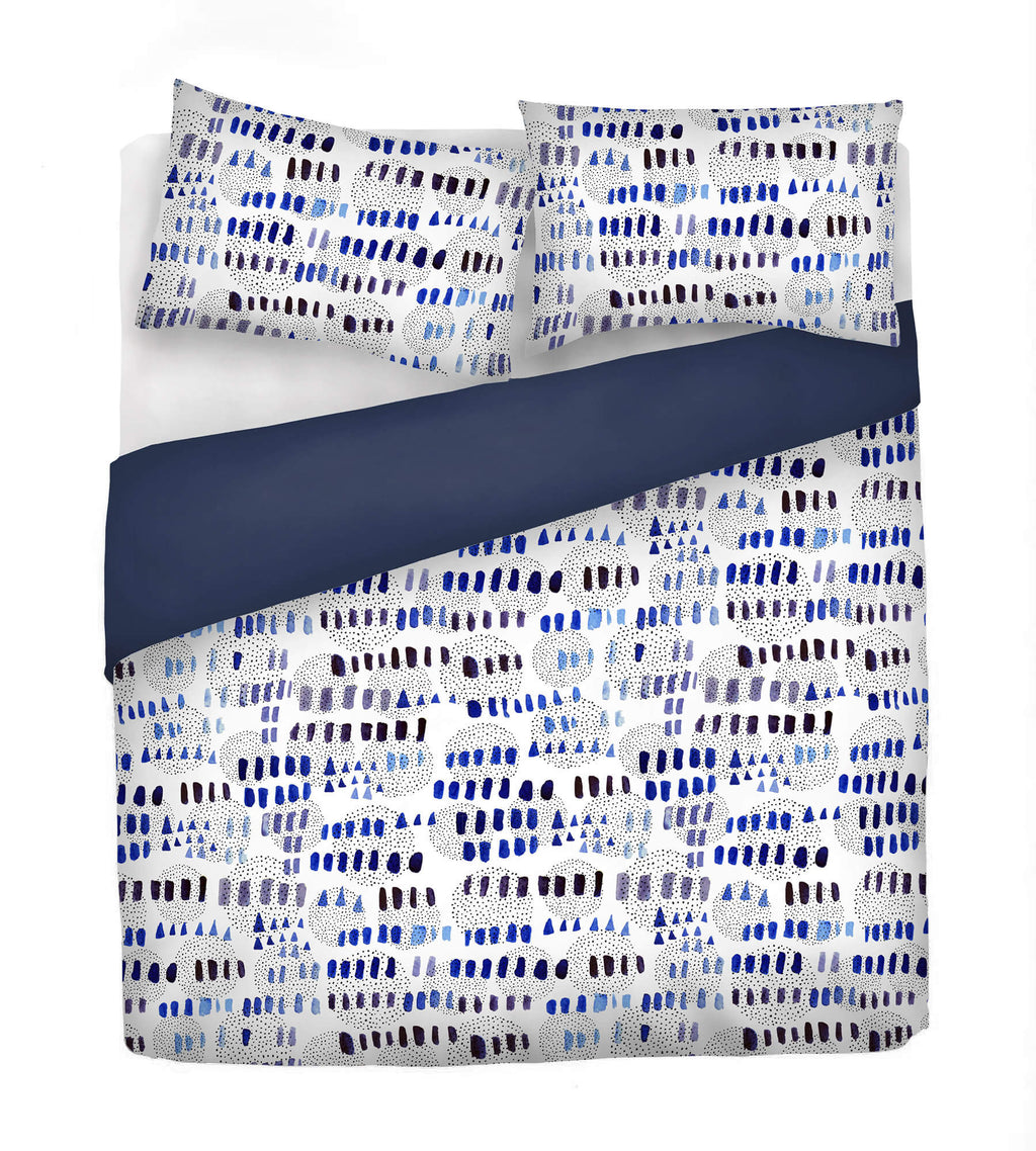 Parure housse de couette ligne fantaisie double face imprimée sur microfibre très douce composée d' une housse de couette et de taies d'oreiller .