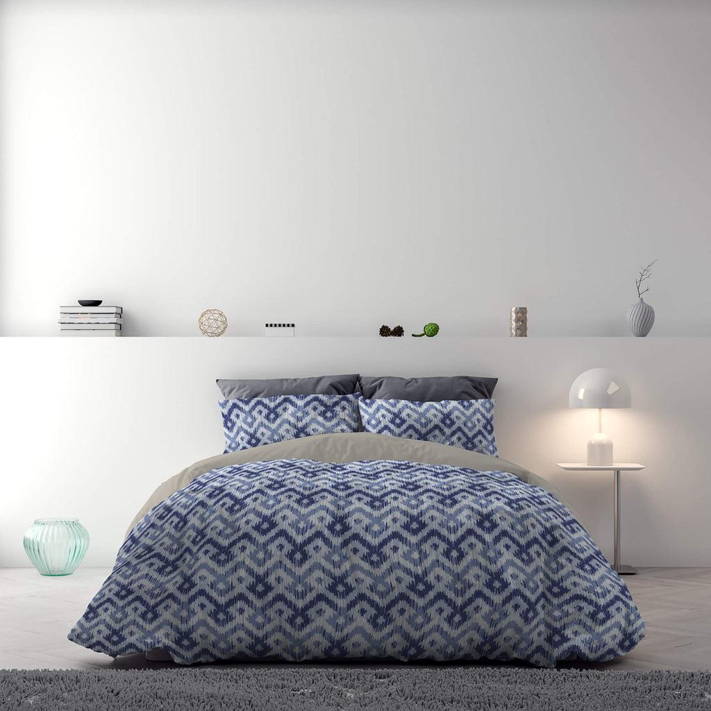 Housse de couette avec impression sur le sac et taies d'oreiller losanges réversibles