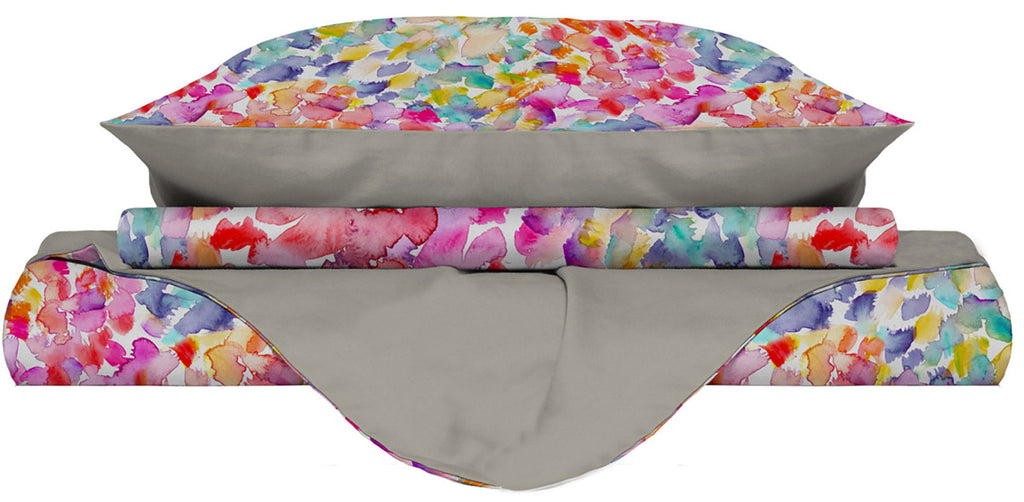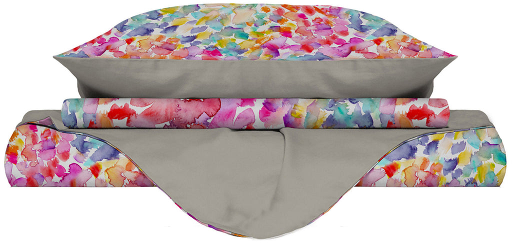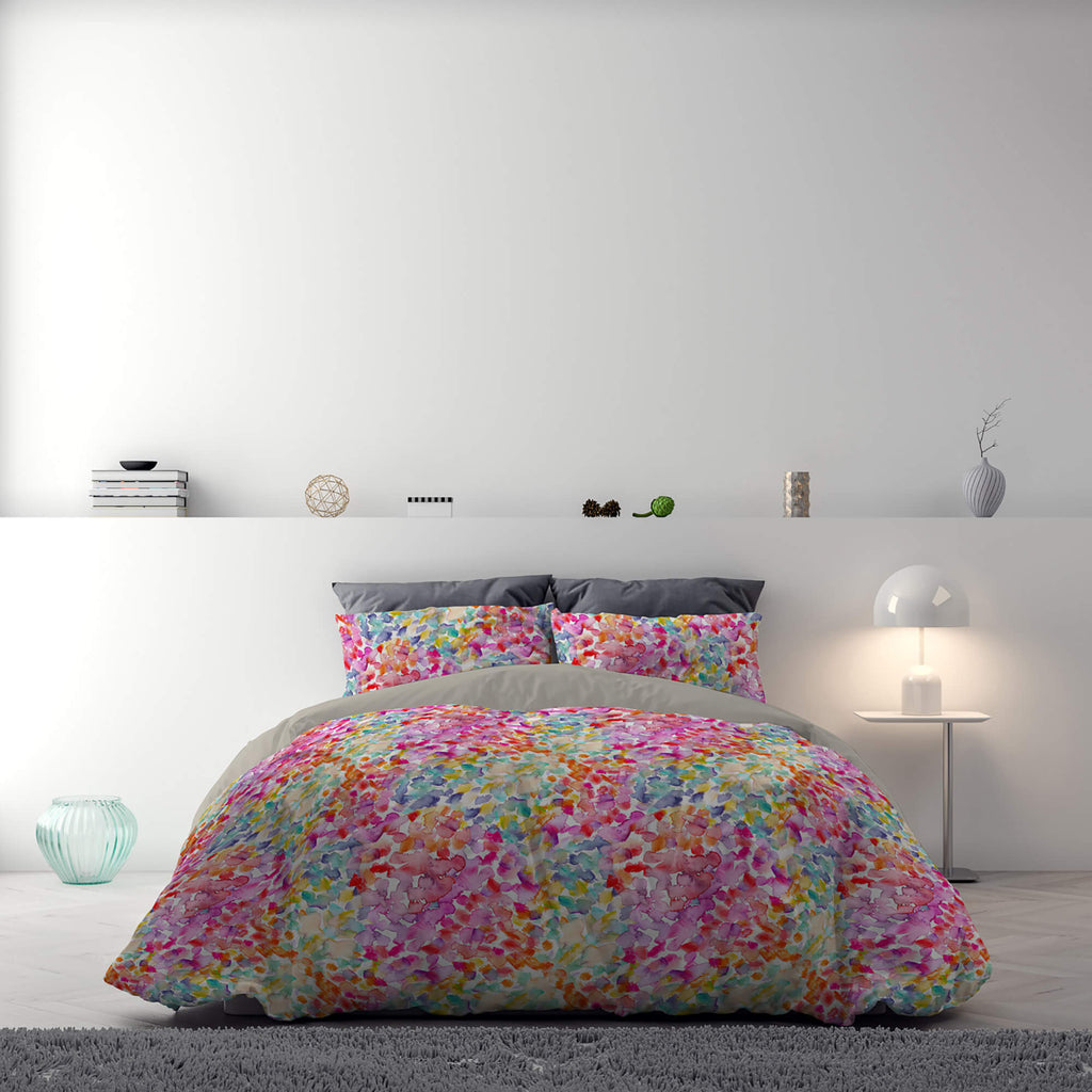 Parure housse de couette ligne fantaisie double face imprimée sur microfibre très douce composée d' une housse de couette et de taies d'oreiller .
