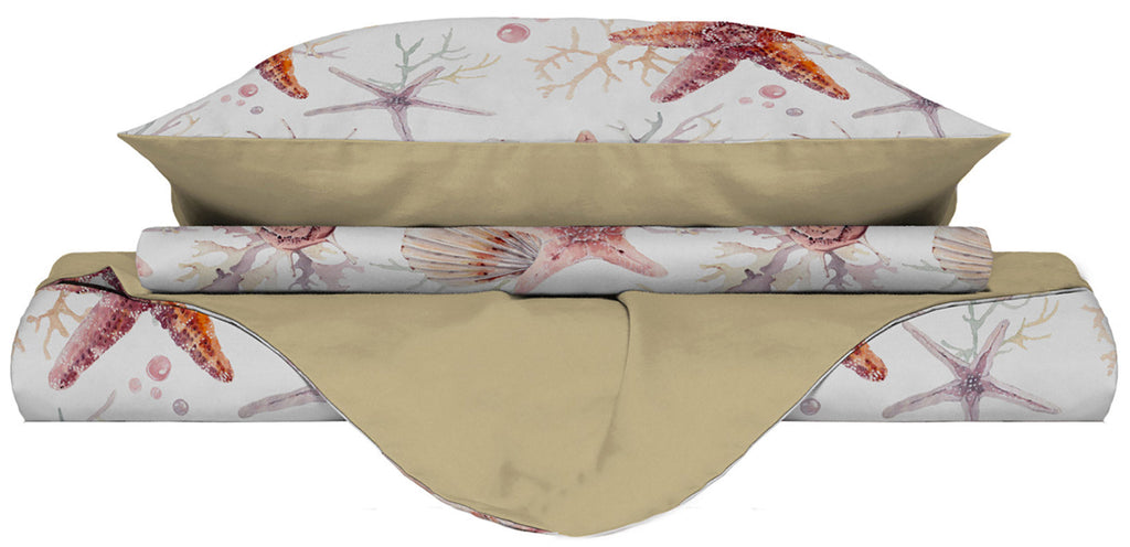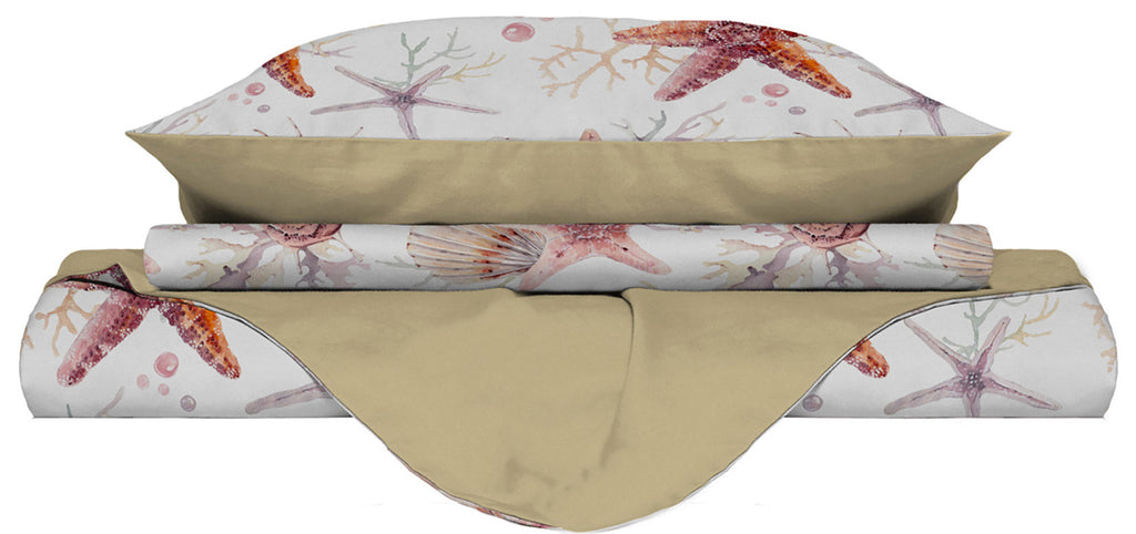 Housse de couette avec imprimé sur le sac et taies d'oreiller étoile de mer double face