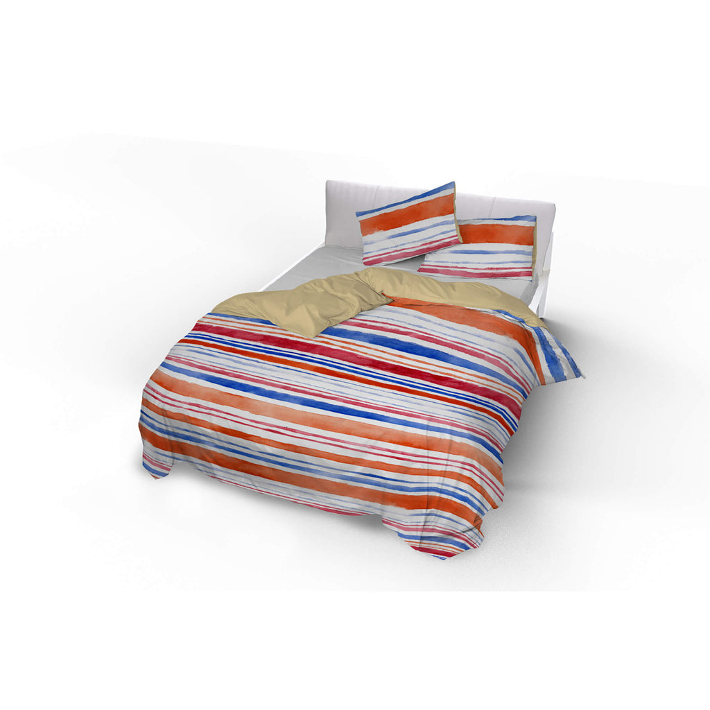Housse de couette simple avec impression sur sac et taies d'oreiller rayures réversibles