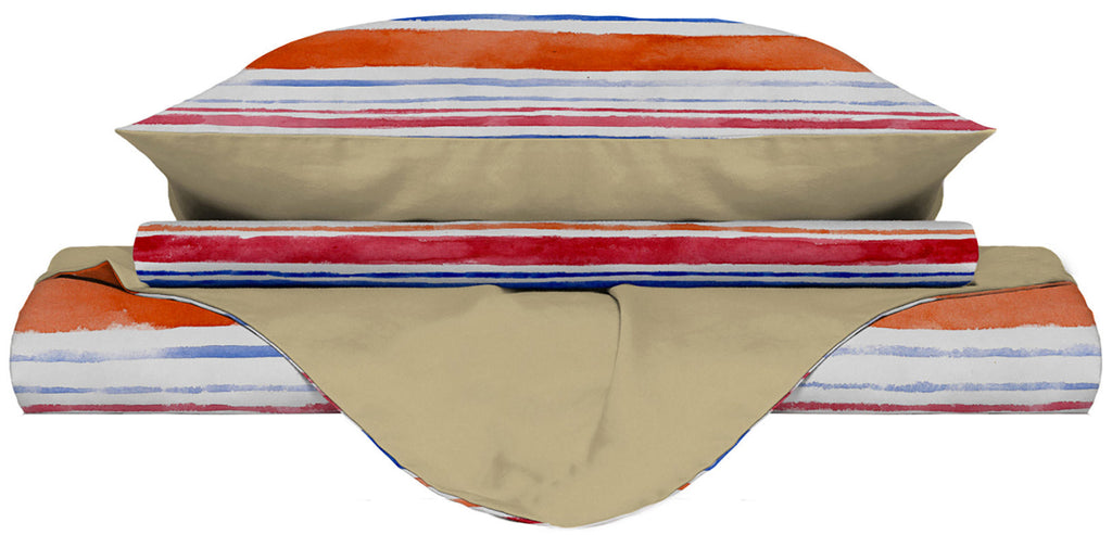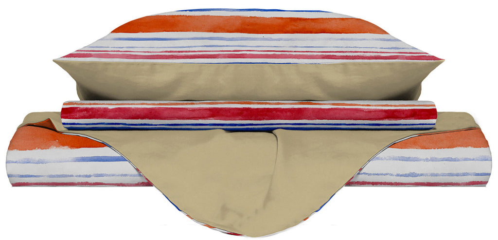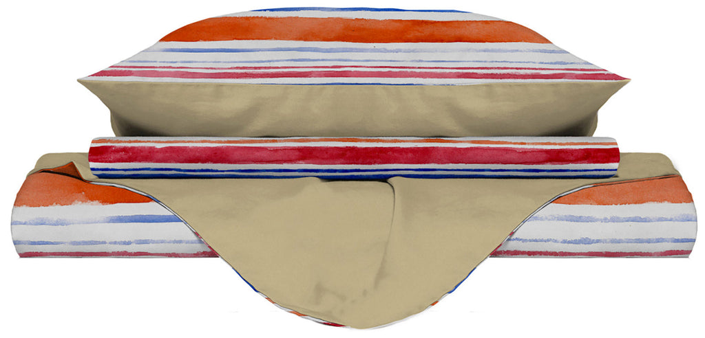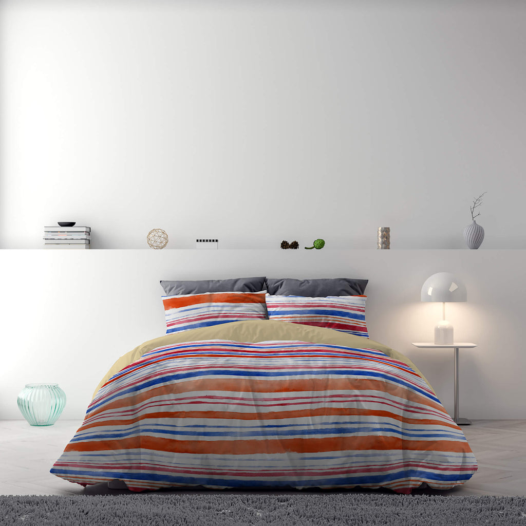 Housse de couette avec imprimé sur le sac et taies d'oreiller Rayures réversibles